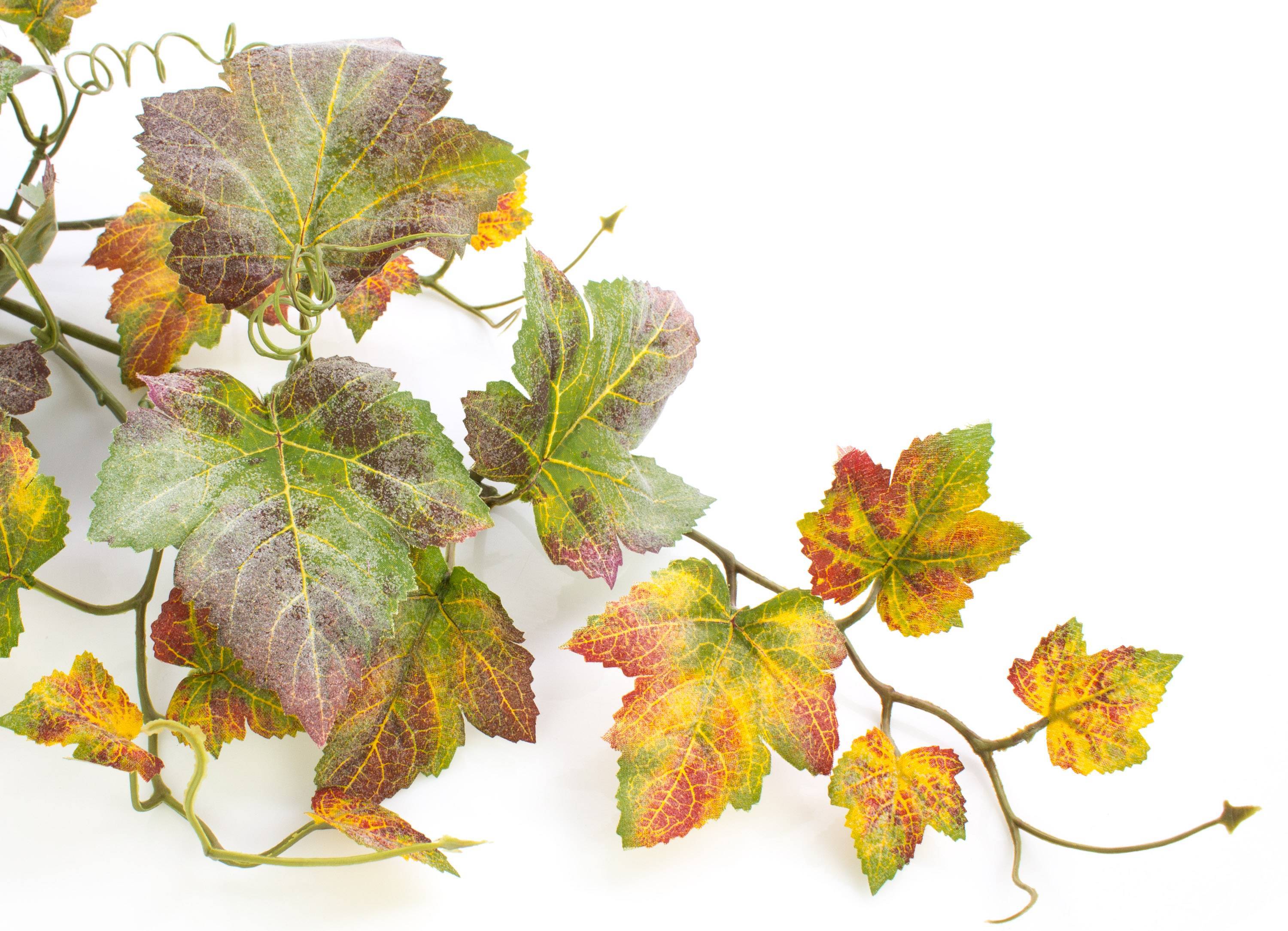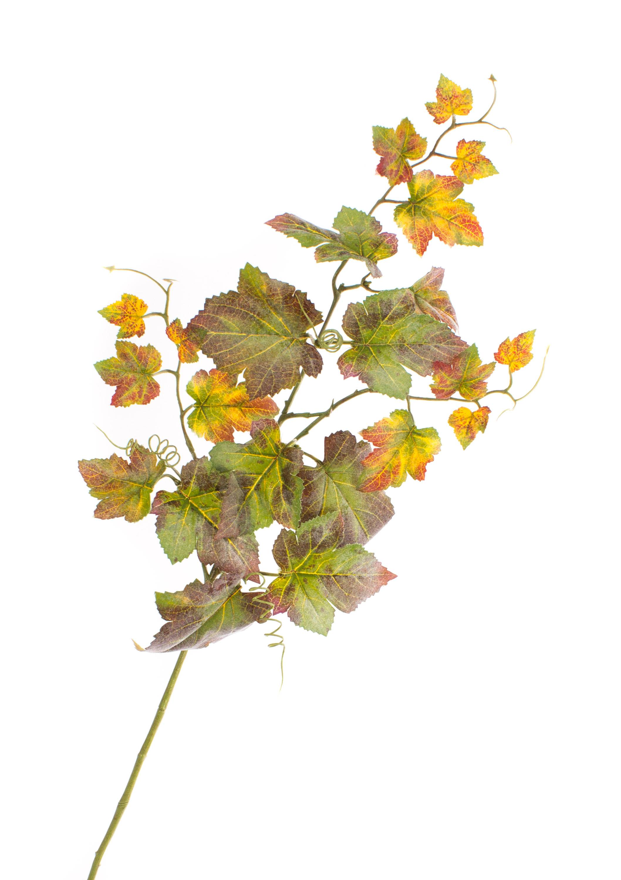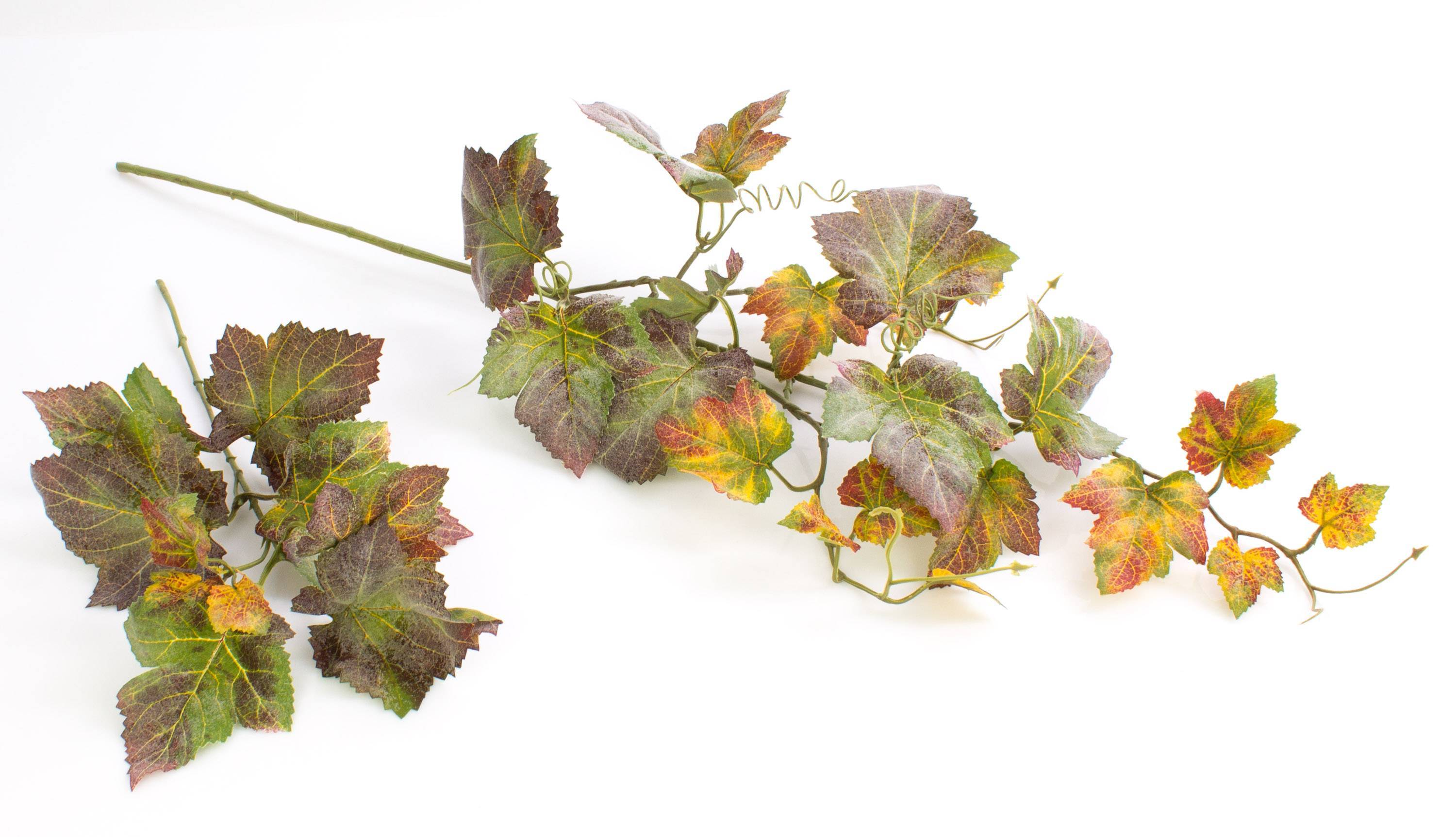Bonita rama de uva con hojas NOAH con 22 hojas de tonos otoñales. La rama posee una longitud total de aproximadamente 75 cm y es ideal para decoraciones otoñales.