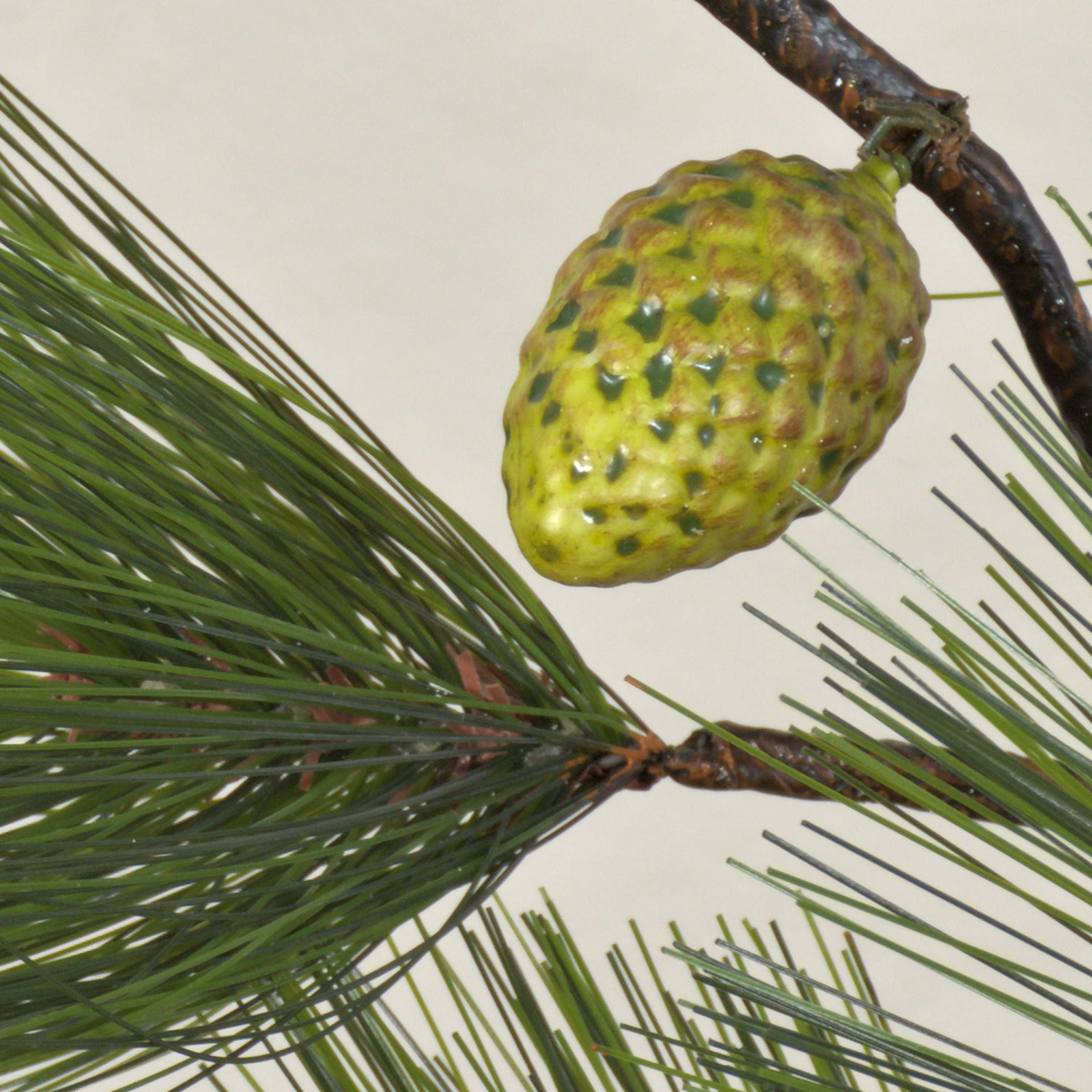 - Gran cantidad de ramas con largas agujas y piñas de plástico con un acabado de alta calidad