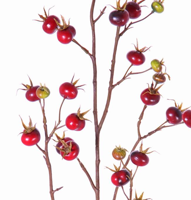 Rama de rosa villosa artificial GERDA, con frutos, rojo, 110cm