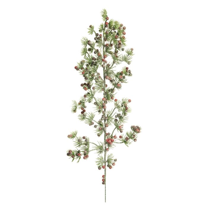 Rama decorativa de alerce LIJIAHE, nevada, bayas, verde-rojo, 45cm