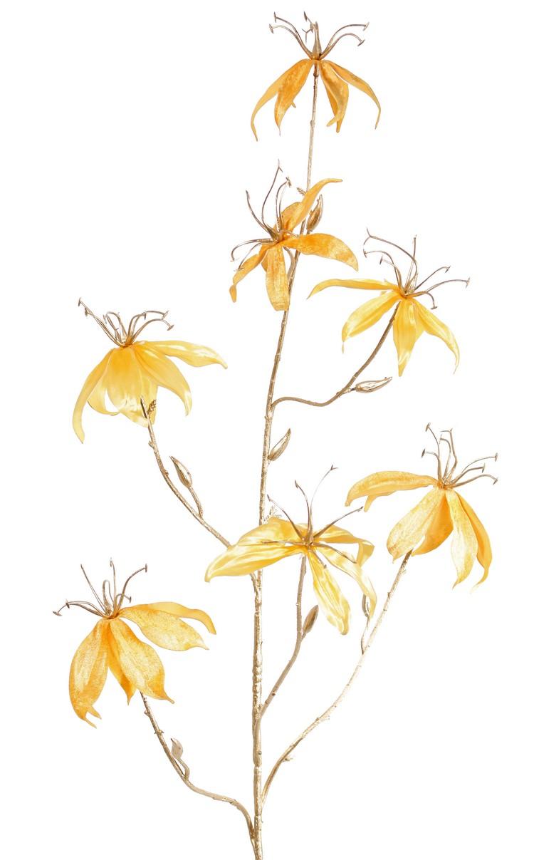 Rama decorativa de gloriosa de terciopelo NESTOS, amarillo y dorado, 110 cm