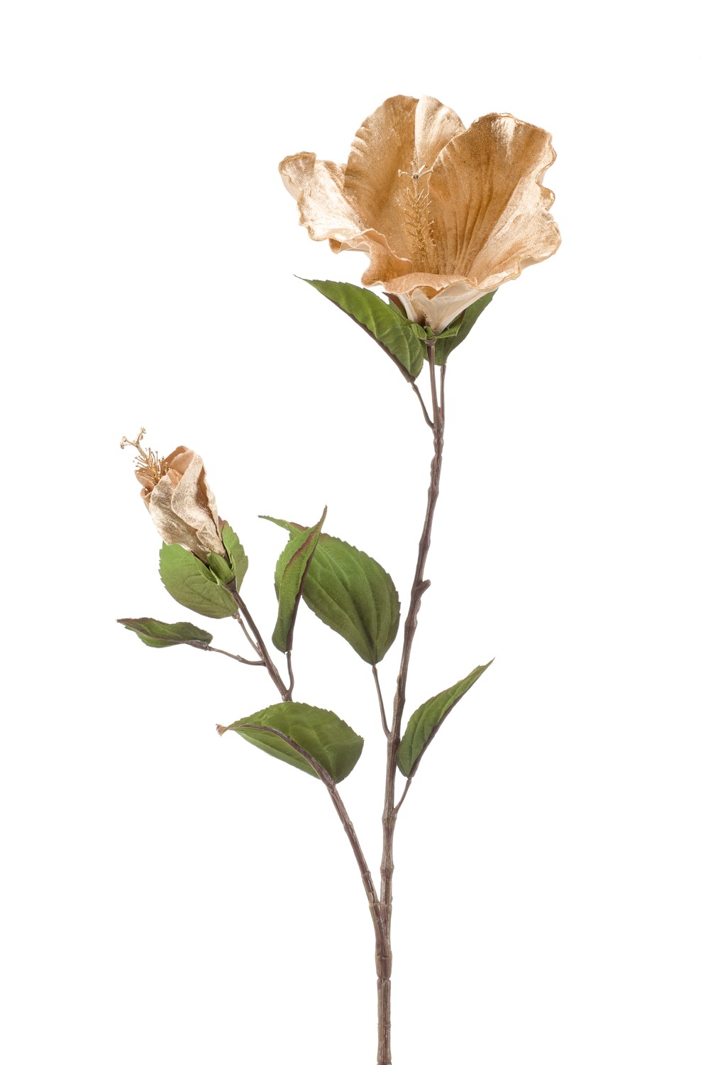 Rama decorativa de hibisco ANUERO, flores, beige-oro, 80cm
