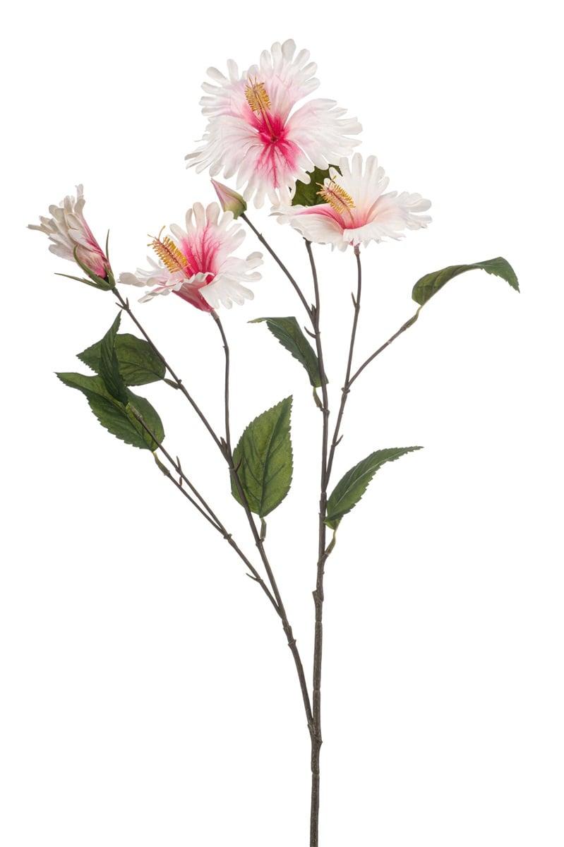 Rama decorativa de hibisco TRUGEN con flores, blanco-rosa, 85 cm