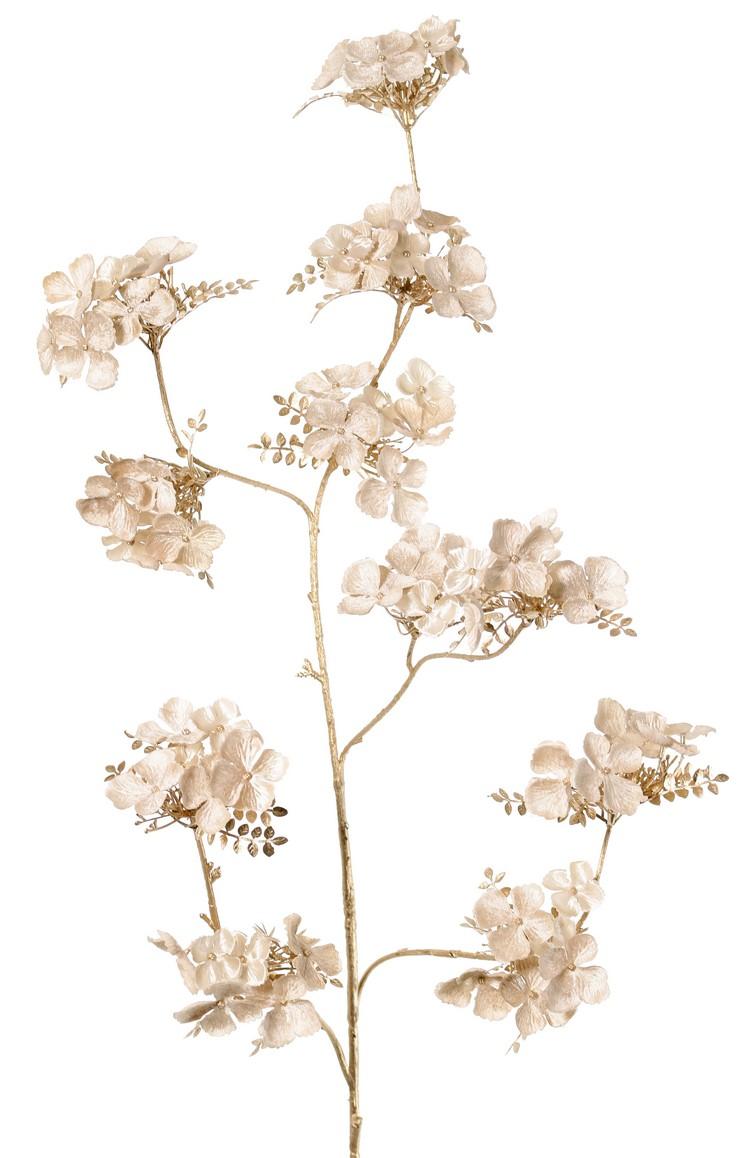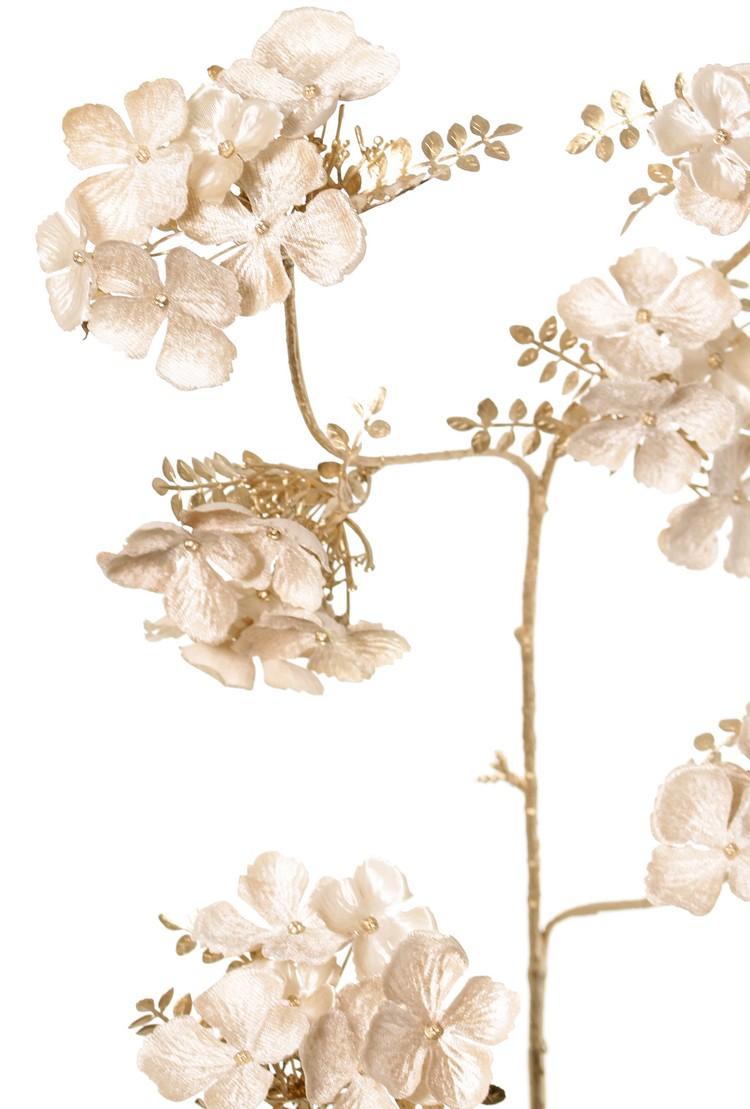 Rama decorativa de hortensias de terciopelo PIRES, crema y dorado, 110 cm