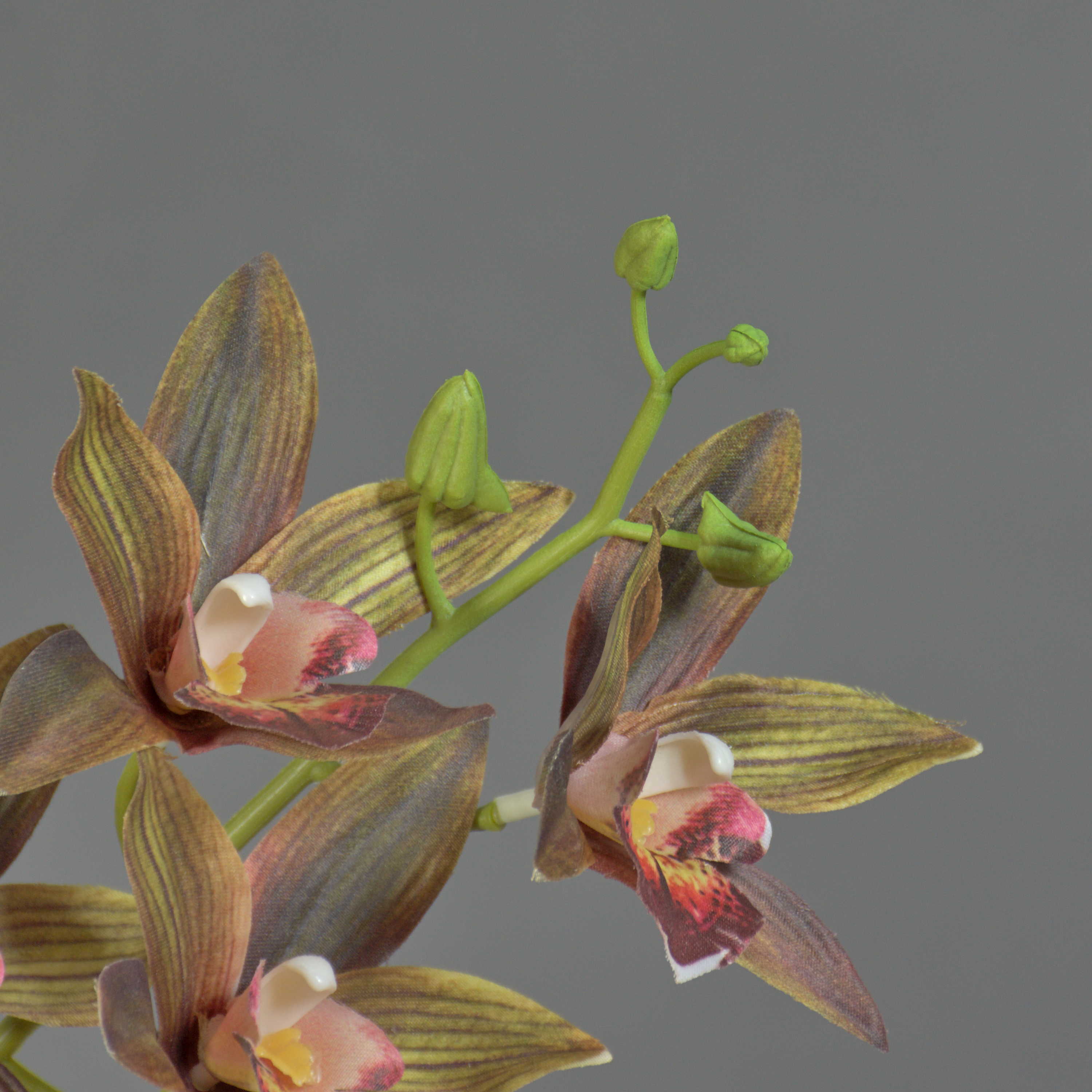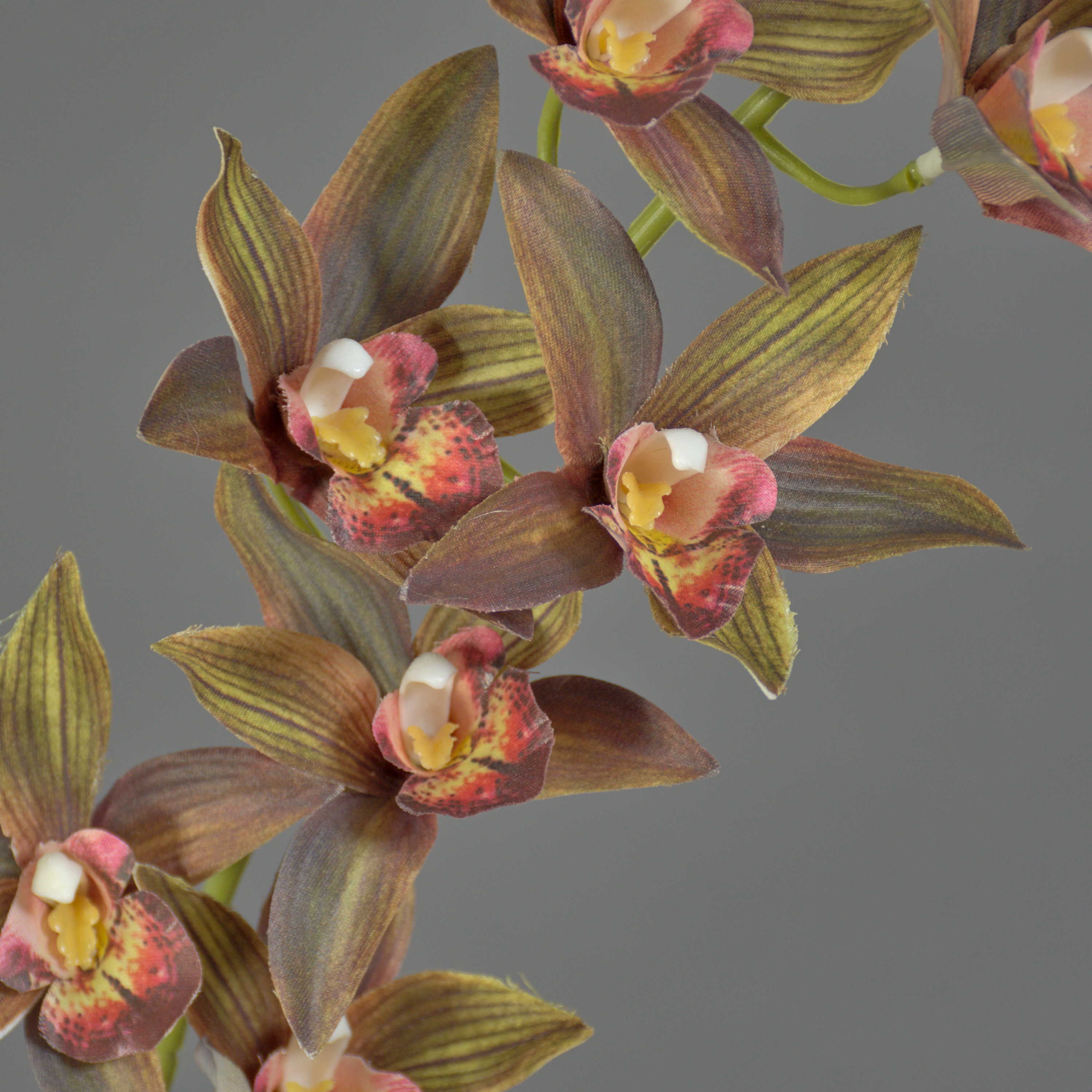 Rama decorativa de orquídea cymbidium YAMEI, rojo-verde oscuro, 80cm