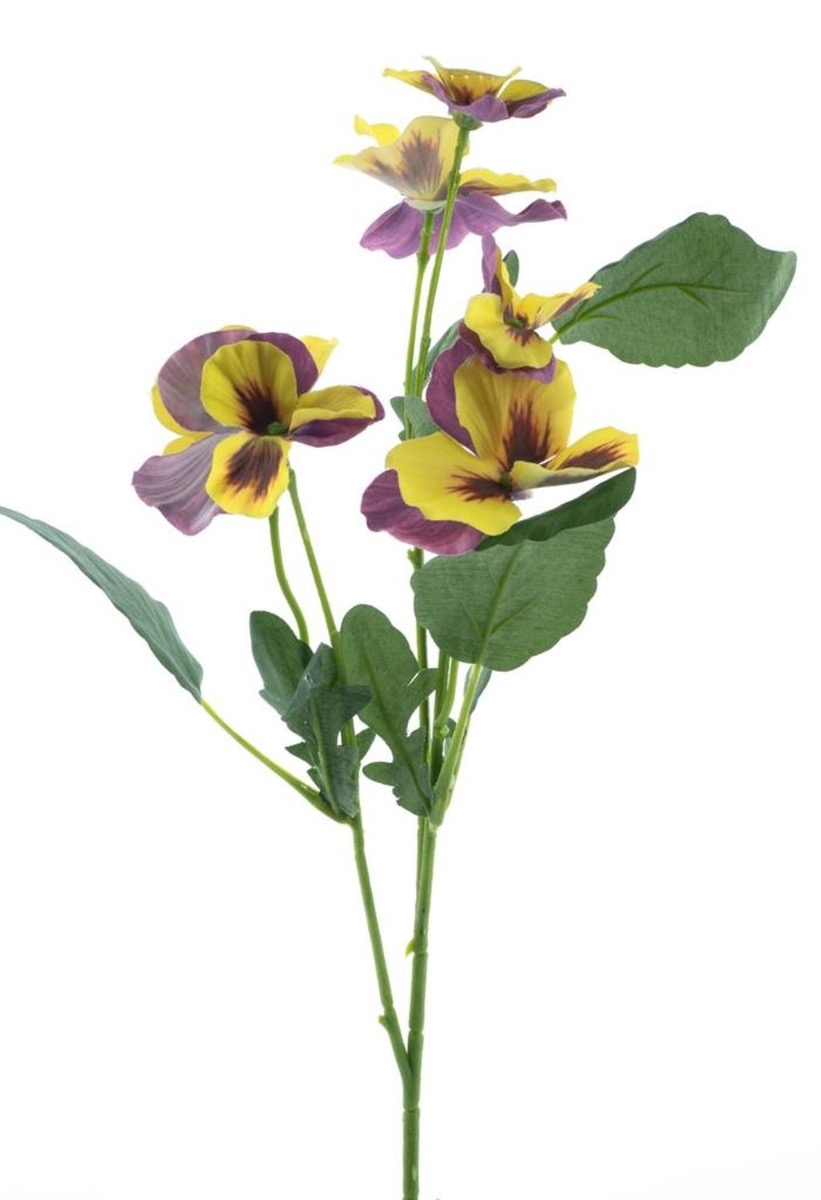 Rama decorativa de pensamientos SIREL, amarillo-violeta, 65 cm