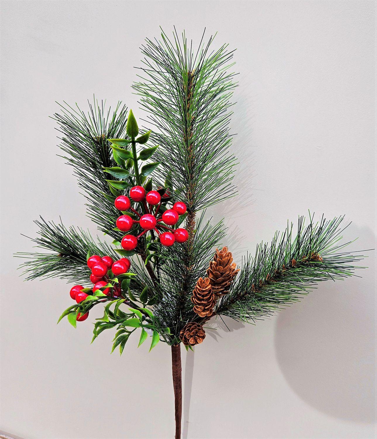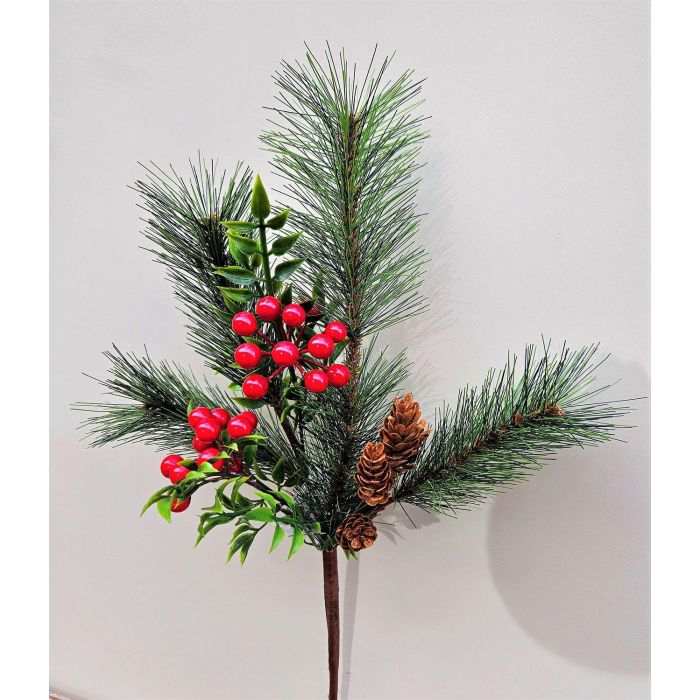 Rama decorativa FREDEGONDA, pino, bayas de serbal, piñas, rojo-verde, 65 cm