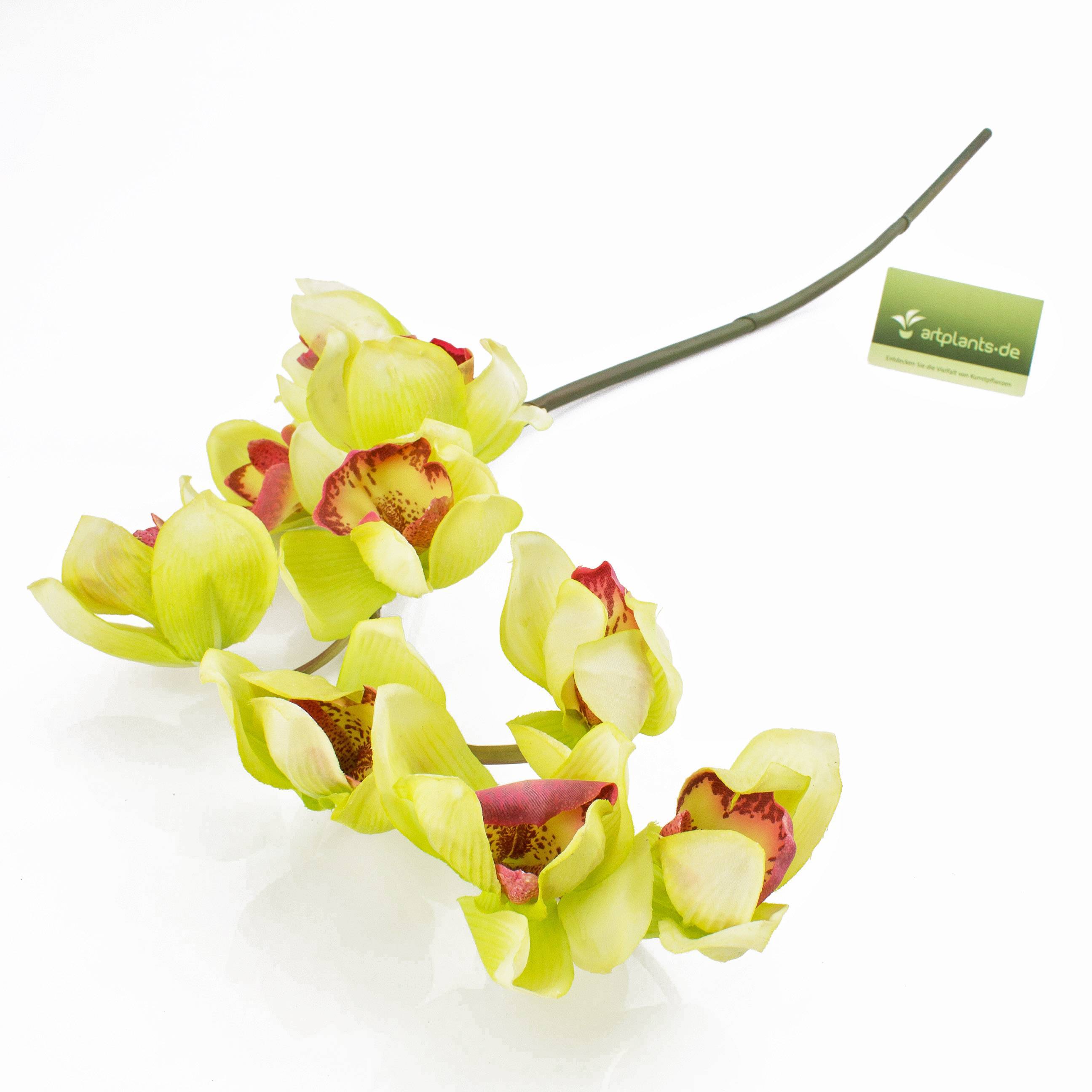 Rama orquídea Cymbidium plástico OKSANA, amarillo-verde, 80cm, Ø6,5cm