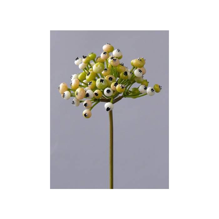 - Se compone de aproximadamente 75 bayas combinadas en amarillo, crema y verde