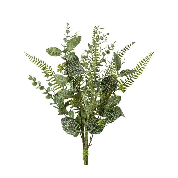 Ramo artificial de fittonia y eucalipto XINOR, verde, 55 cm