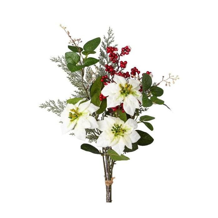 Ramo artificial de flores de pascua y ciprés DORFI, bayas, blanco-rojo, 55 cm