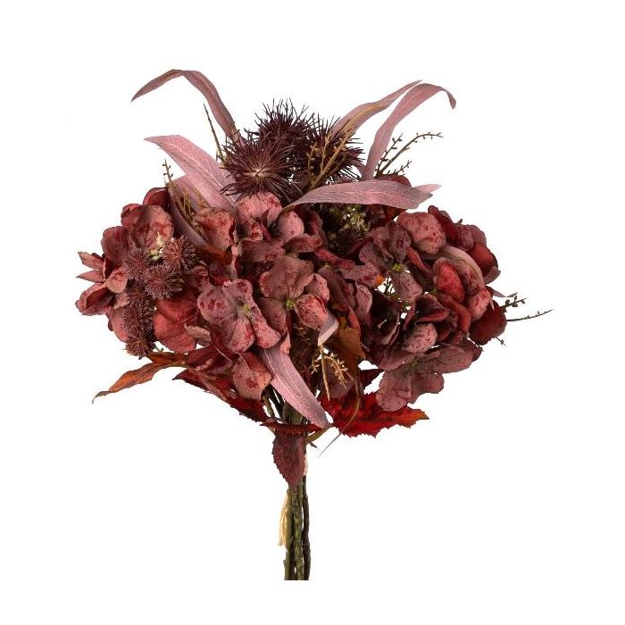 Ramo artificial de hortensia y cardo esférico FISMA, rojo burdeos, 45 cm