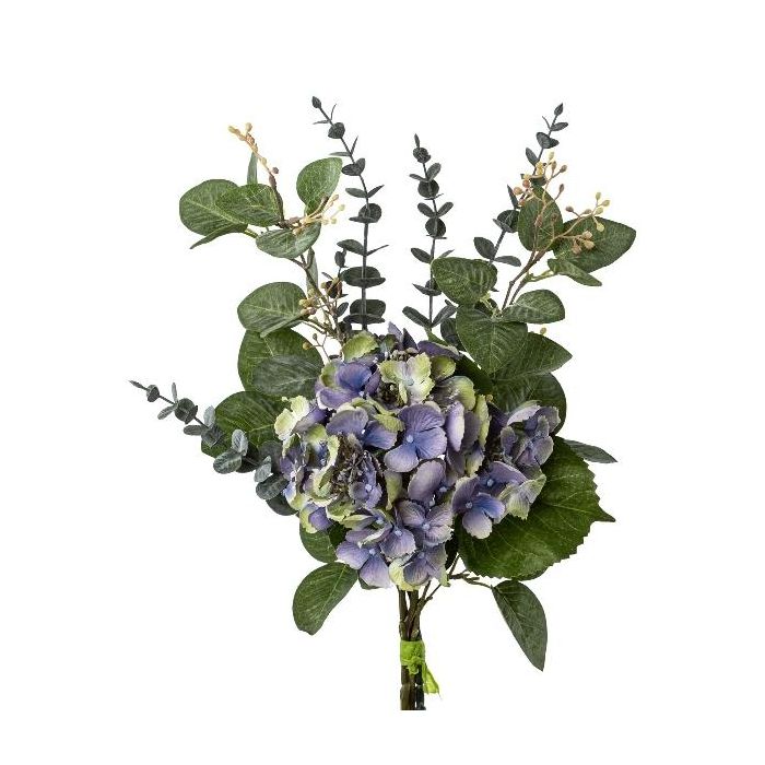 Ramo artificial de hortensias y eucalipto CUNTA, azul verdoso, 55 cm