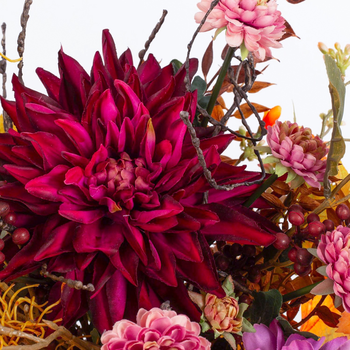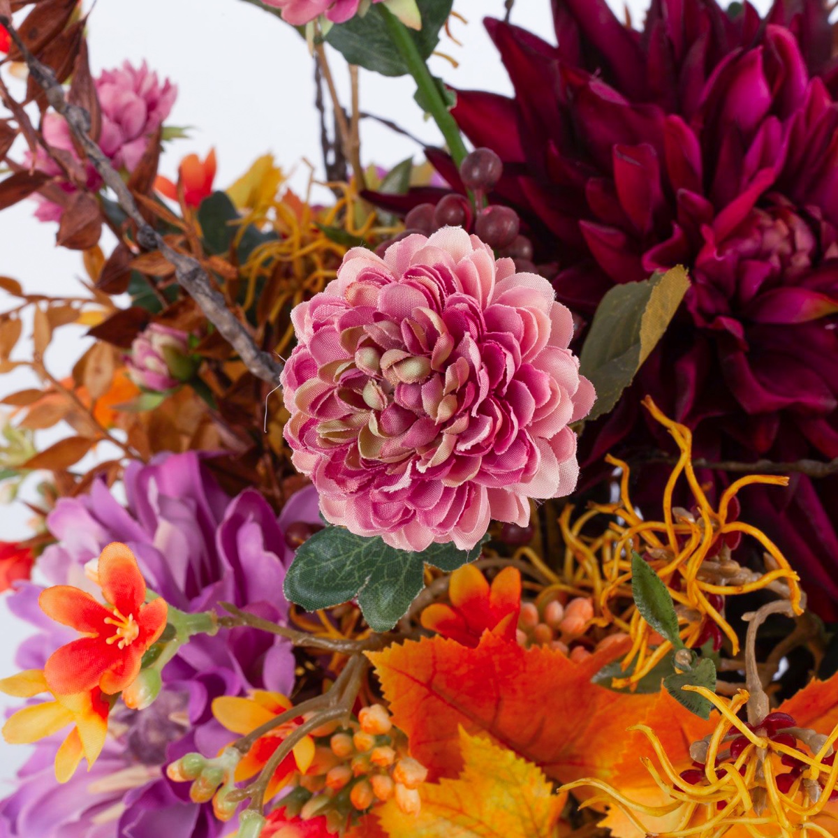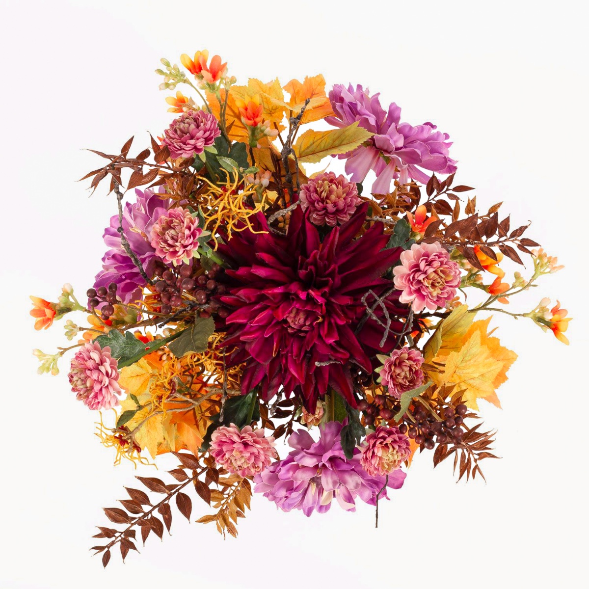 Ramo artificial de otoño KALENA, dalia, zinnia, violeta-naranja, 40cm, Ø45cm