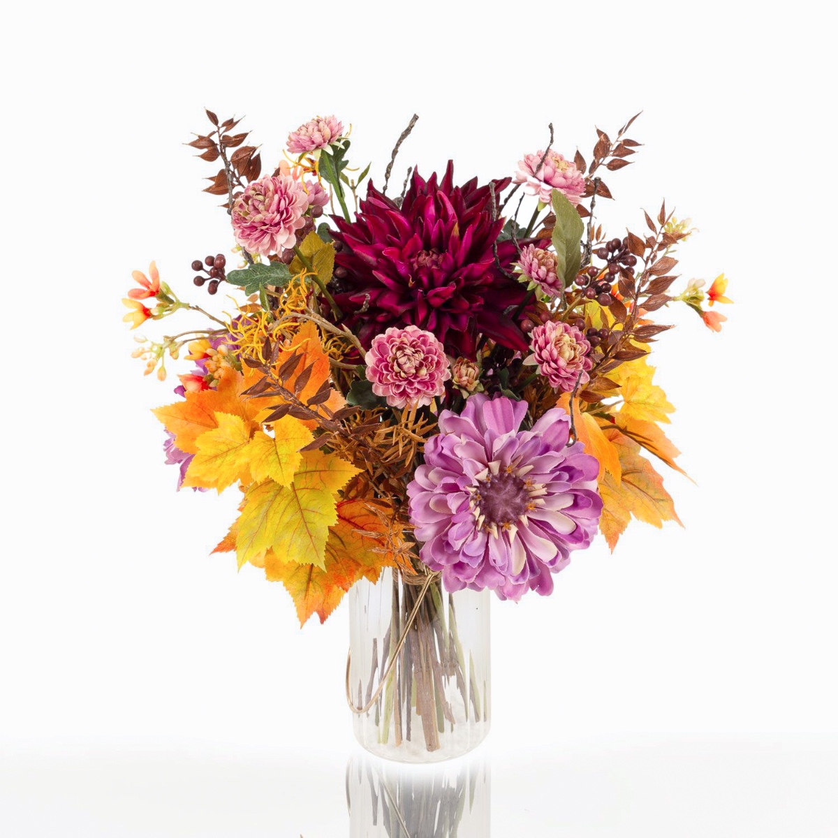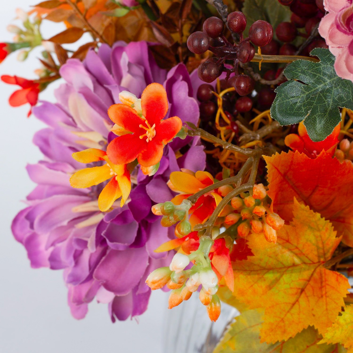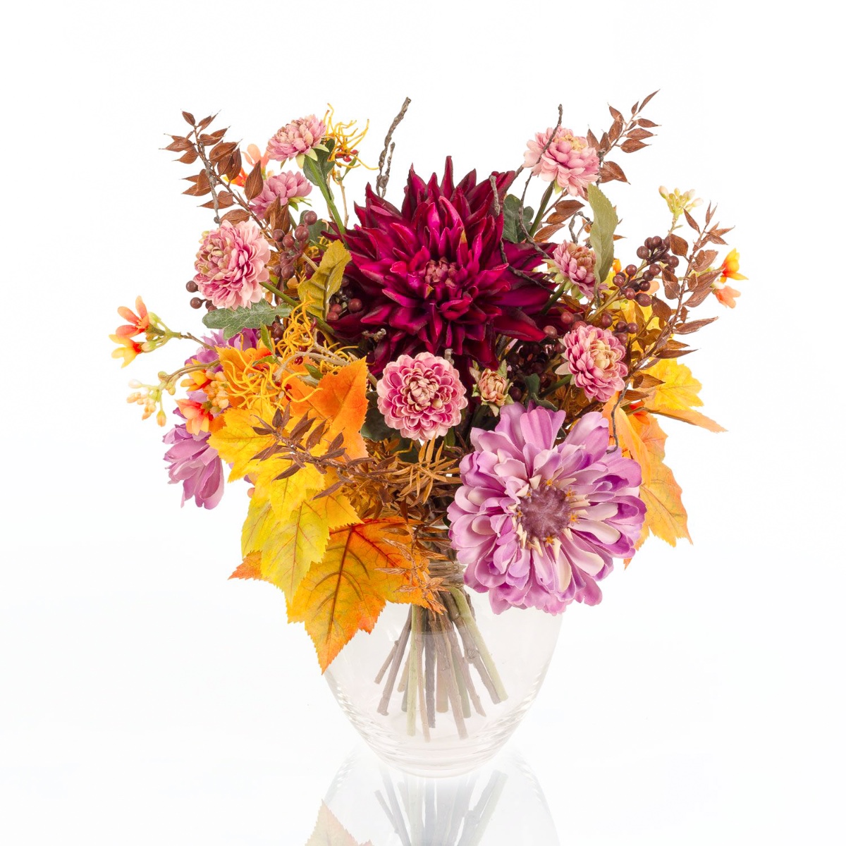 Ramo artificial de otoño KALENA, dalia, zinnia, violeta-naranja, 40cm, Ø45cm