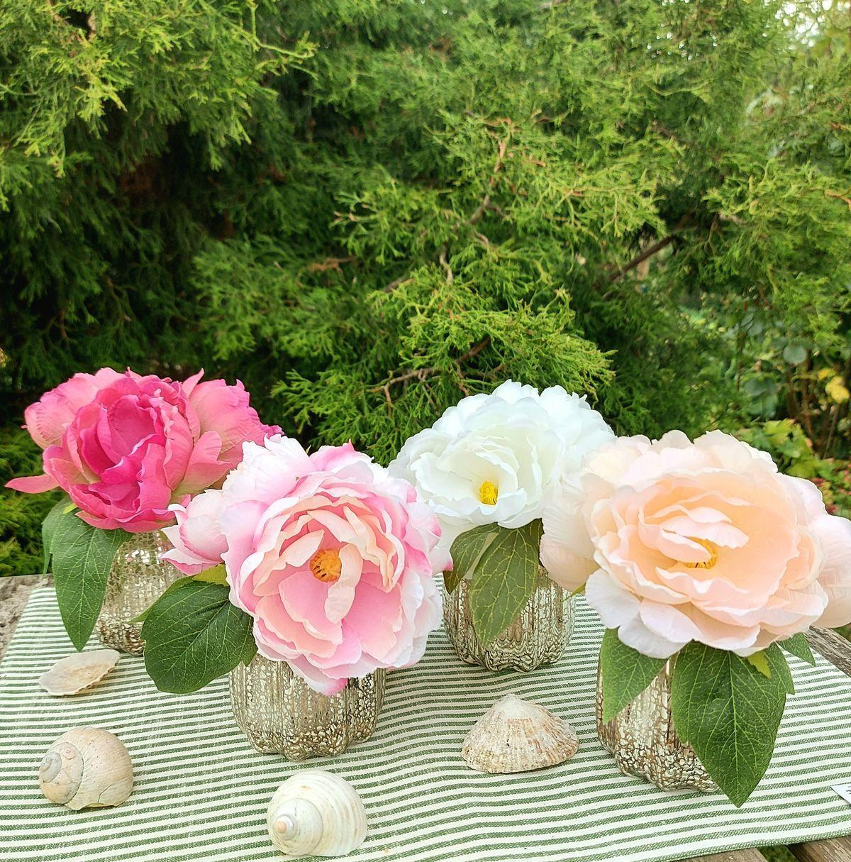 Ramo artificial de peonías VEIKO en jarrón de cristal, blanco, 15 cm
