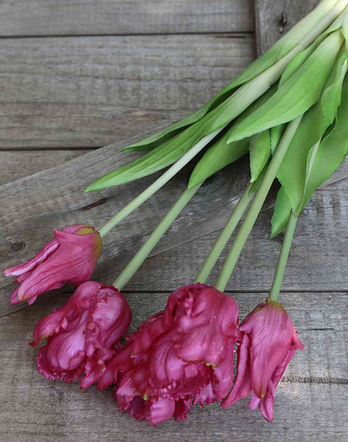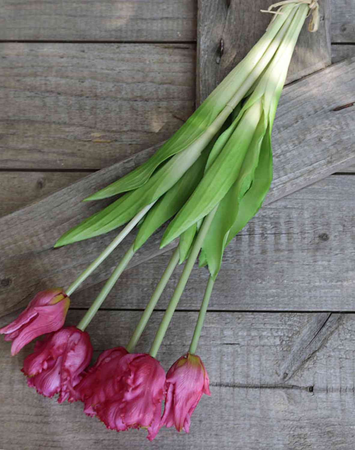 El ramo de tulipanes de plástico TYRA de color fucsia-verde con una altura de 45 cm y un diámetro total de 20 cm decora su espacio personal con estilo.
