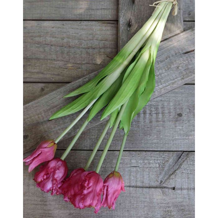 Ramo artificial de tulipanes papagayo TYRA, fucsia-verde, 45cm, Ø20cm