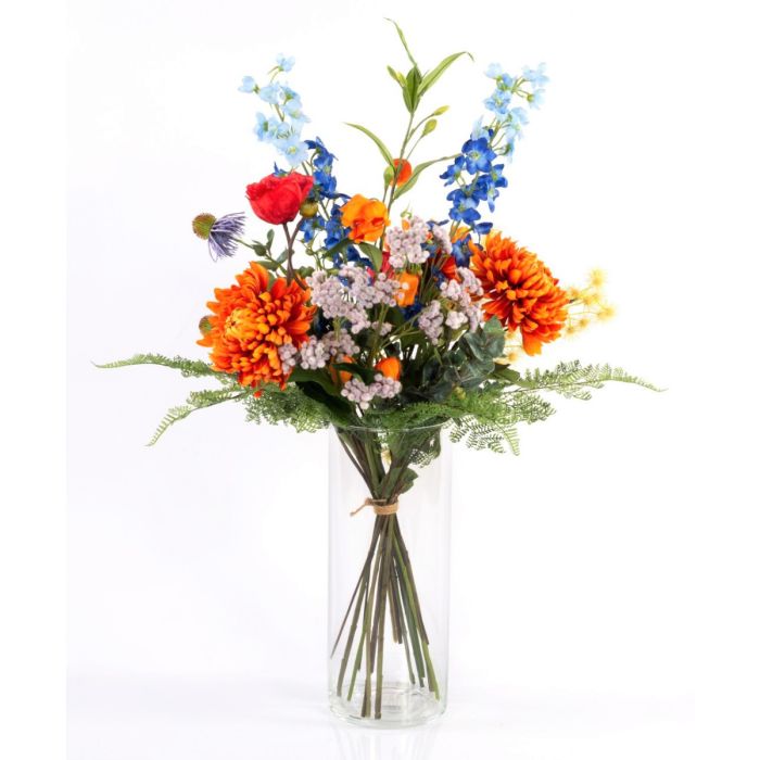 Ramo artificial de verano LOLANA, delphinium, naranja-azul, 70cm, Ø50cm