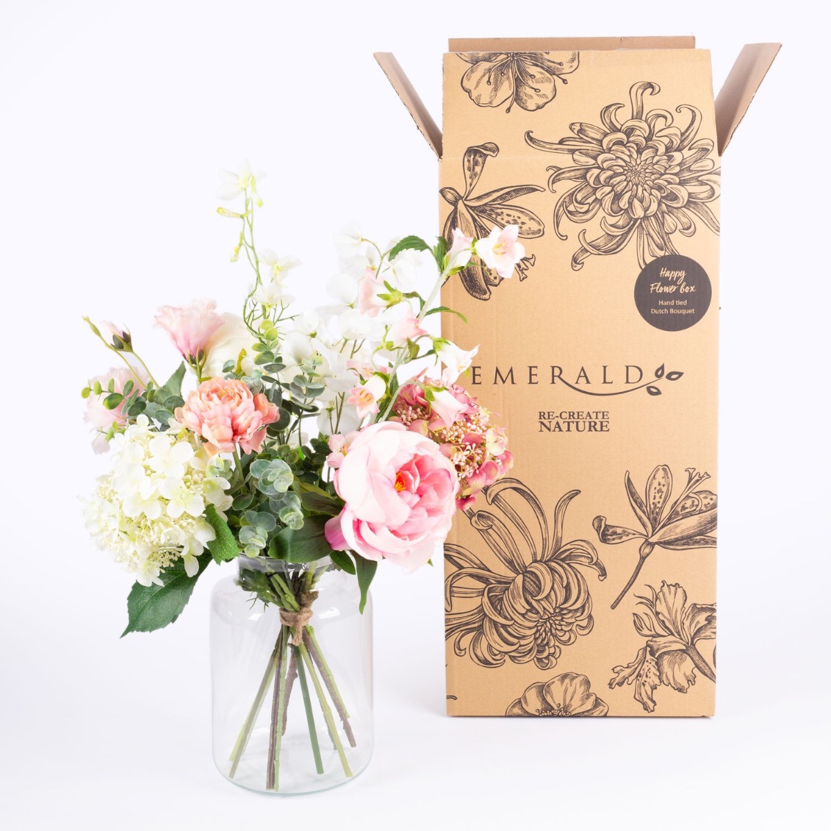 - Atadas con un cordón de sisal, las flores y las ramas se pueden cortar individualmente o, tras retirar el cordón, se pueden utilizar por separado para proyectos creativos