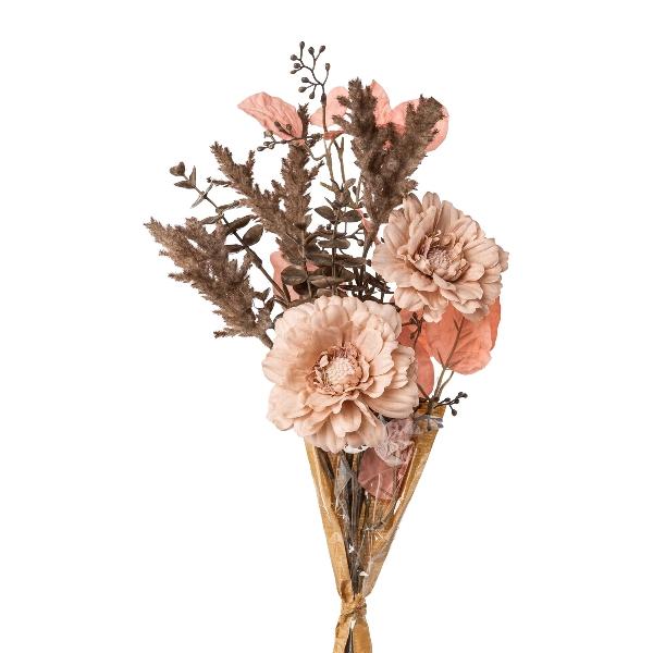 Ramo artificial de zinnias JELCA con periquito, rosa viejo-marrón, 60 cm
