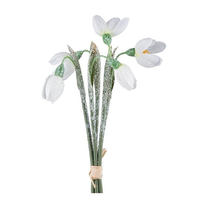 Ramo de campanillas de invierno artificiales PLONI, nevadas, blancas, 20 cm