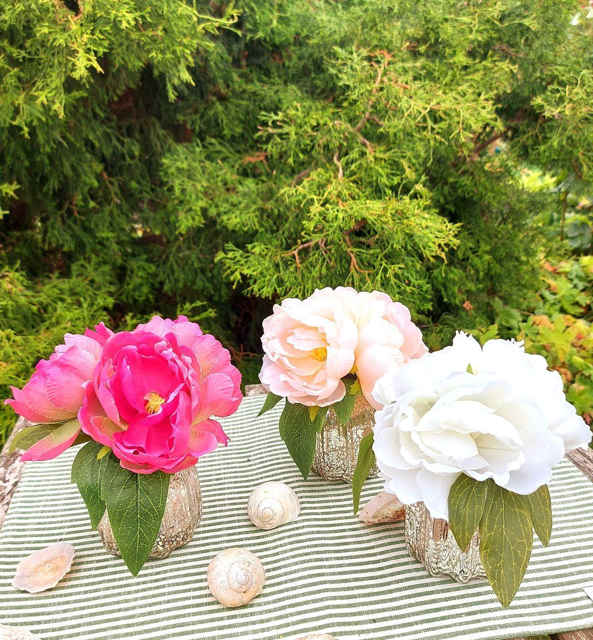 Ramo de flores artificiales de peonía VEIKO en jarrón de cristal, rosa, 15 cm