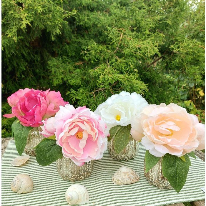 Ramo de flores artificiales de peonía VEIKO en jarrón de cristal, rosa-crema, 15 cm