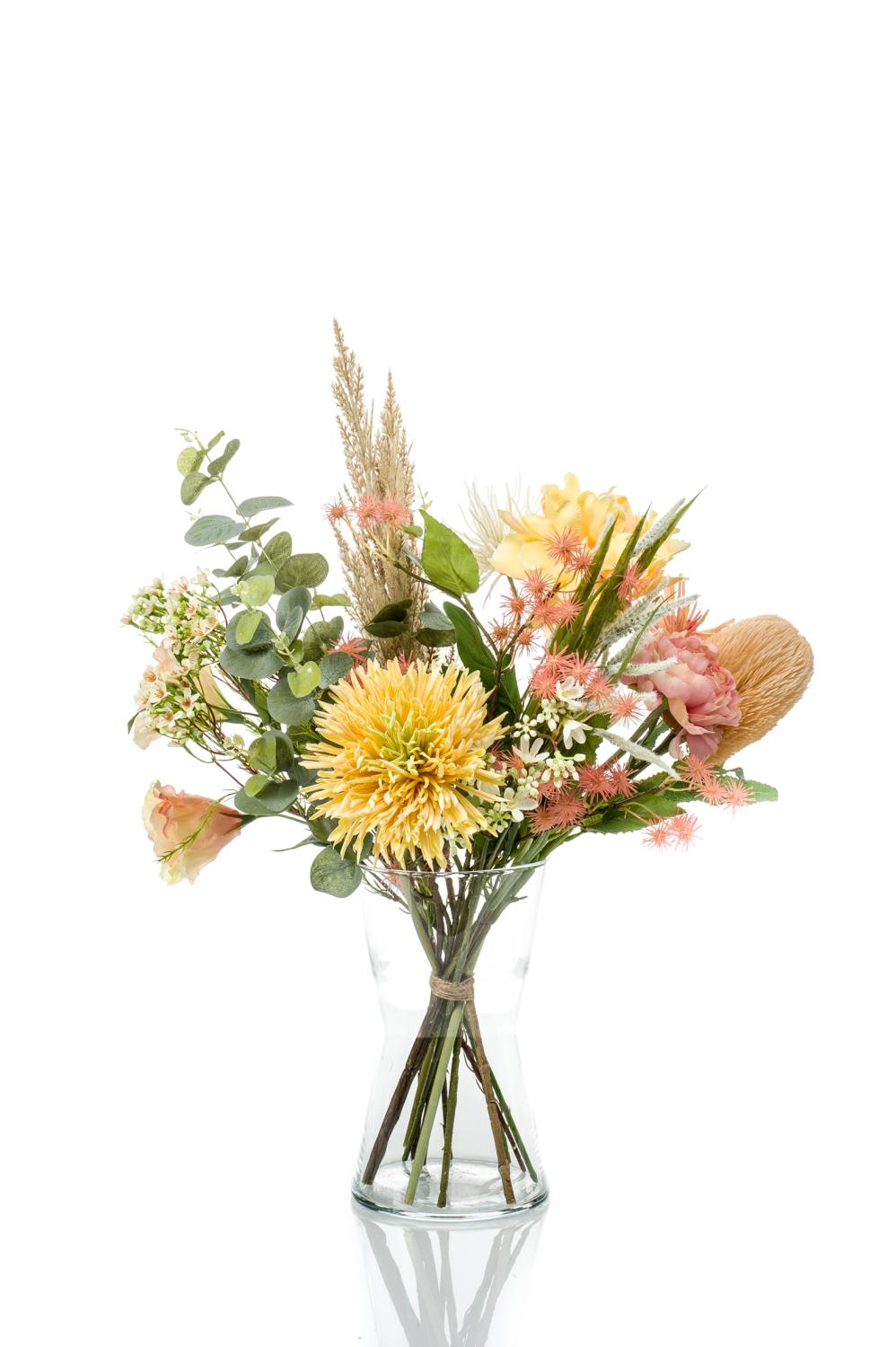 Ramo de flores artificiales FEME, amarillo-rosa, 70cm, Ø45cm