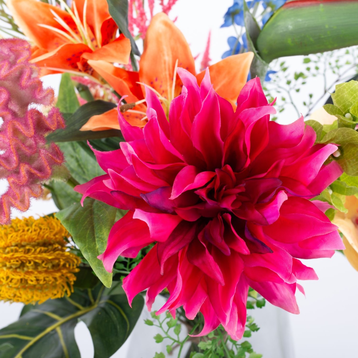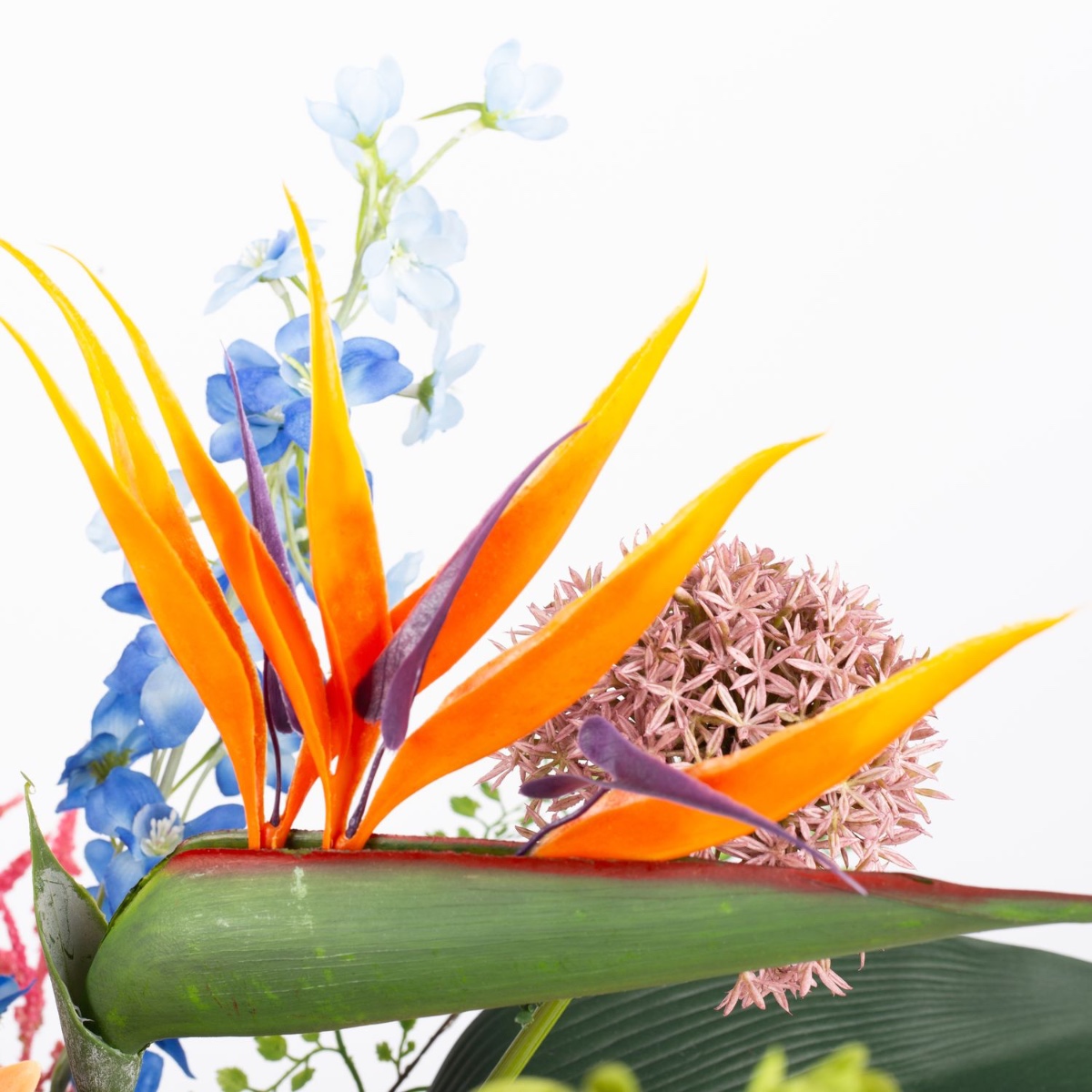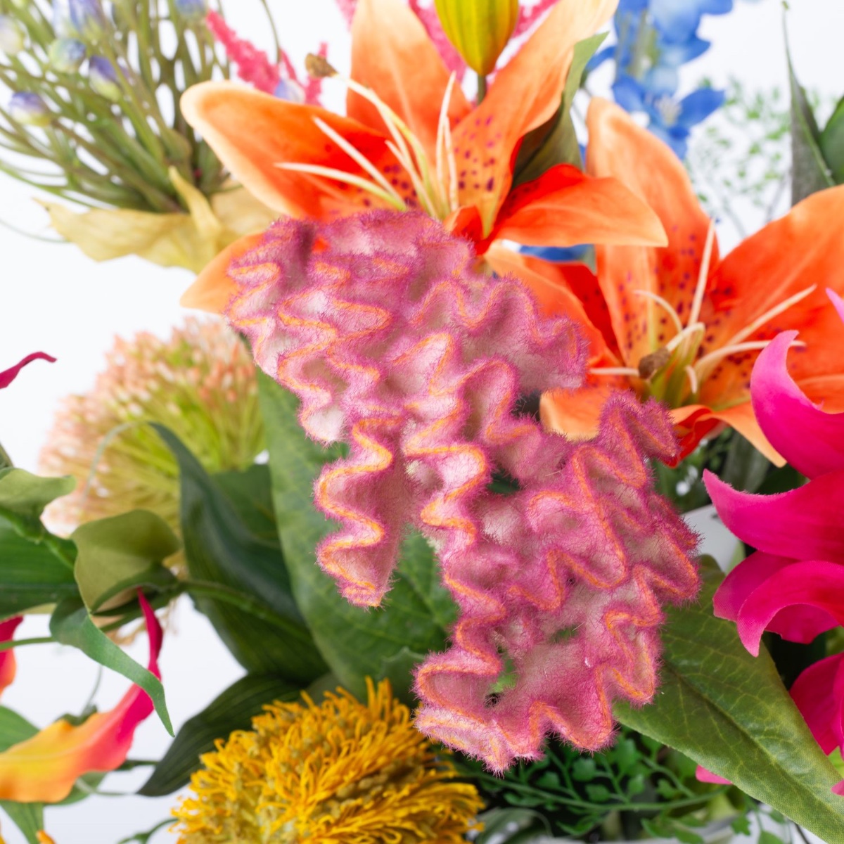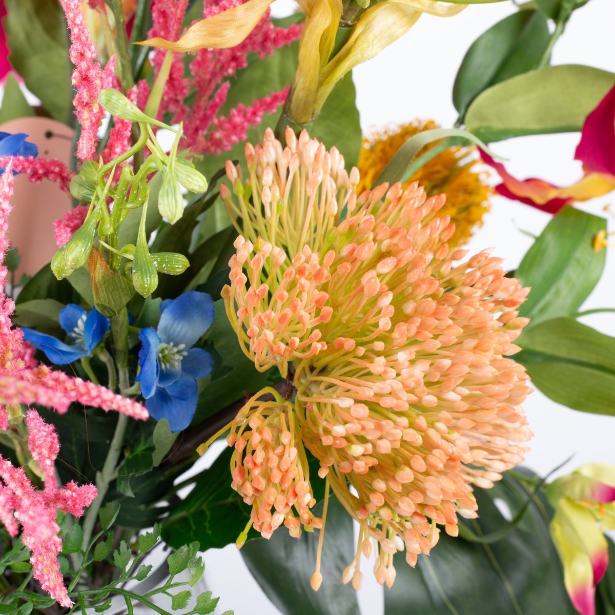 El exótico y artificial ramo de flores FEME es realmente llamativo con sus fuertes colores. La combinación creativa de flores atrae todas las miradas hacia el exuberante arreglo floral artificial.