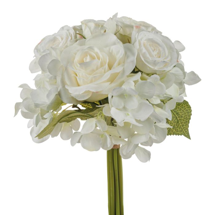 Ramo de flores artificiales FOUDILA, rosas, hortensias, blanco, 25cm