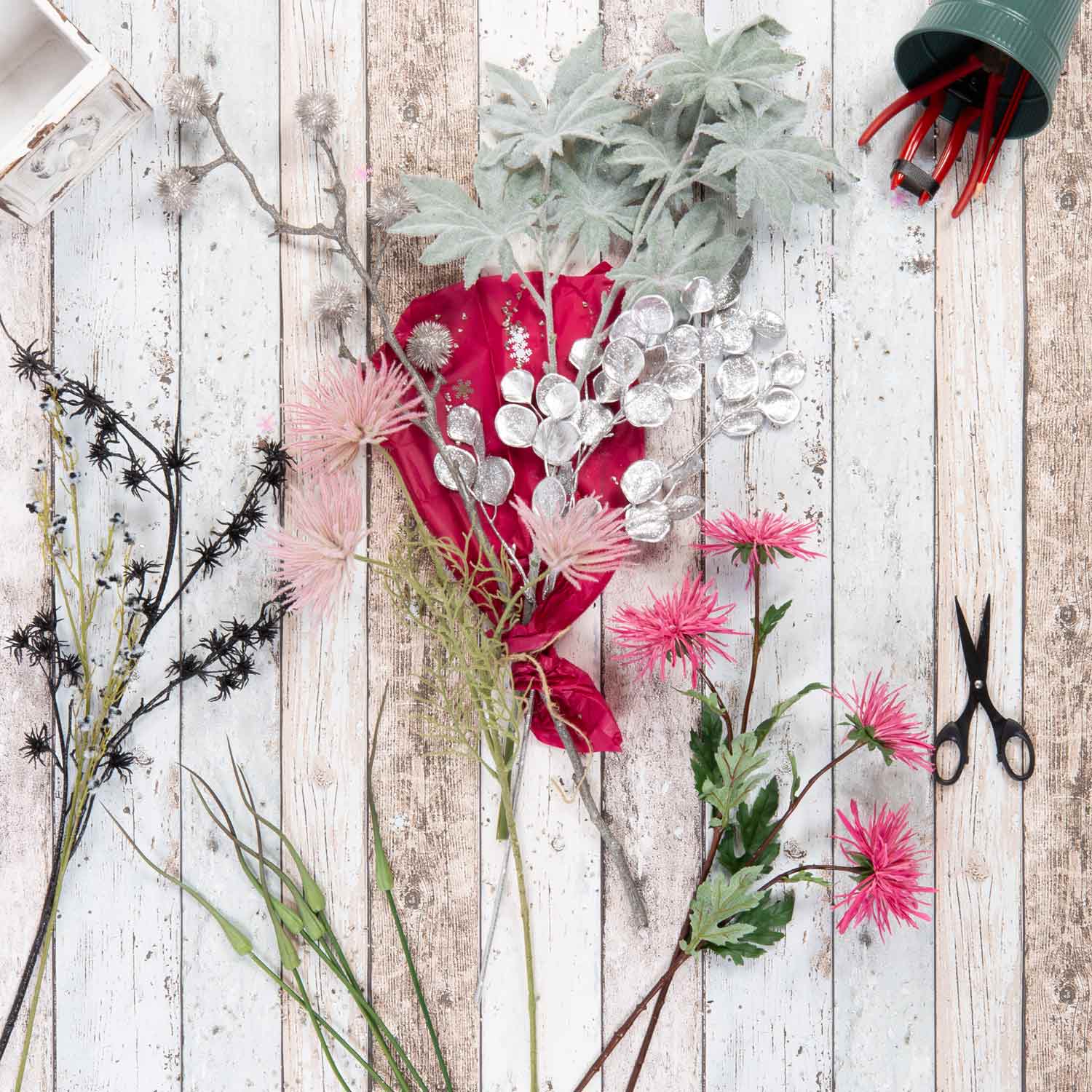 - Ramo de flores artificiales creado por artplants y atado a mano