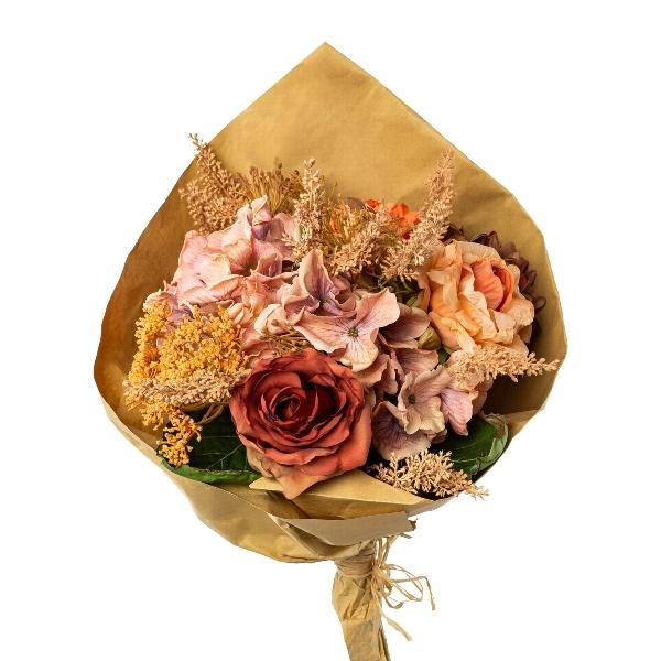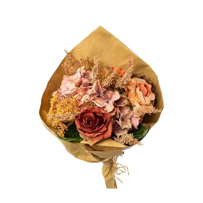 Ramo de flores artificiales rosa y hortensia Skimmie FORTA, naranja salmón y rosa viejo, 50 cm