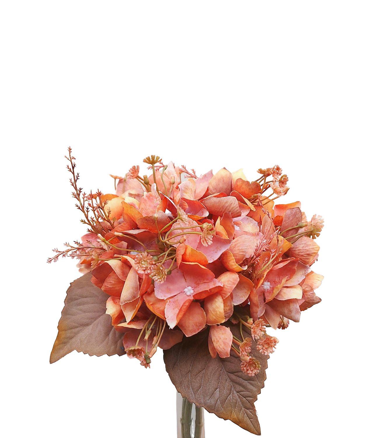 Ramo de hortensias artificiales NAGOLD, gypsophila, plumas de pavo real, aspecto seco, naranja-rosa, 35 cm