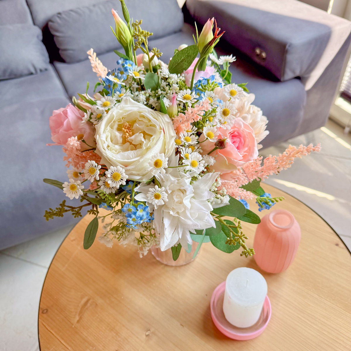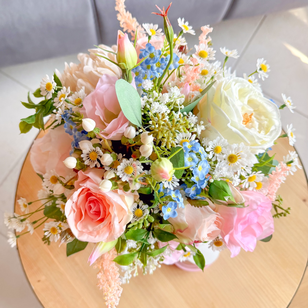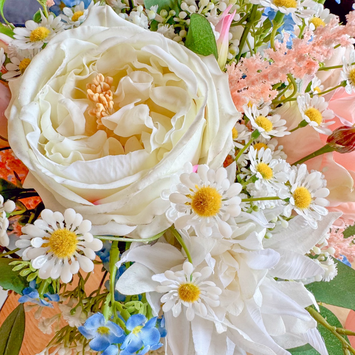 El florecimiento de la elegancia: ¡el ramo de tus sueños para ese día tan especial! Un ramo de novia elegante que combina la elegancia atemporal con la delicadeza romántica. Las magníficas orquídeas blancas Cymbidium y Phalaenopsis forman el corazón de esta creación y le dan al ramo un aire exclusivo y lujoso. Las delicadas peonías rosas añaden un toque juguetón, mientras que las clásicas rosas blancas simbolizan la pureza. La delicada gypsophila completa el arreglo y aporta ligereza y armonía. ¡Déjate encantar por este ramo de novia y haz que tu día sea inolvidable! ¡Compra el look!