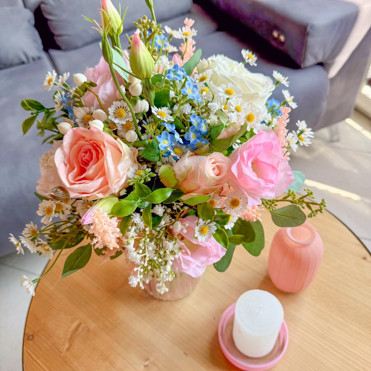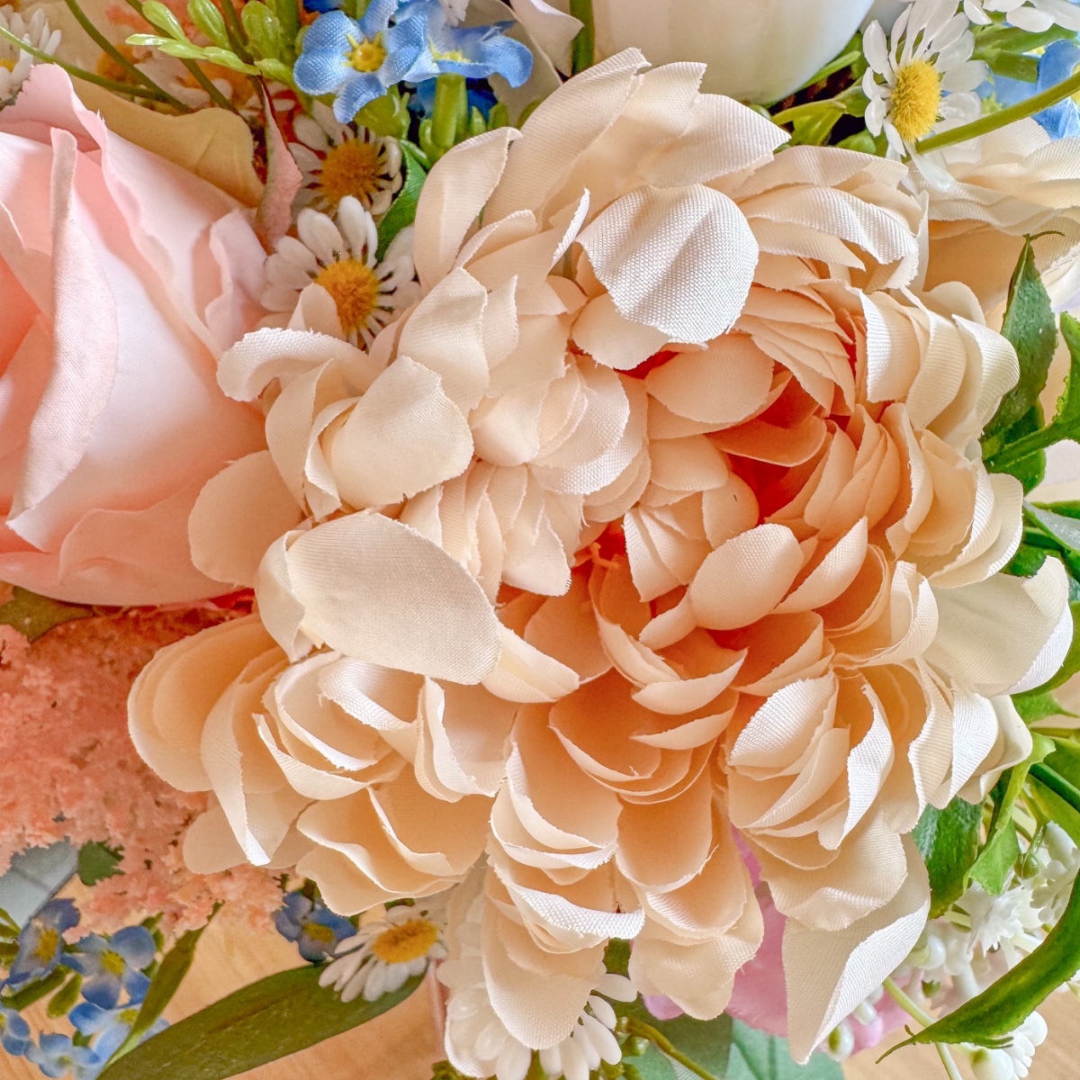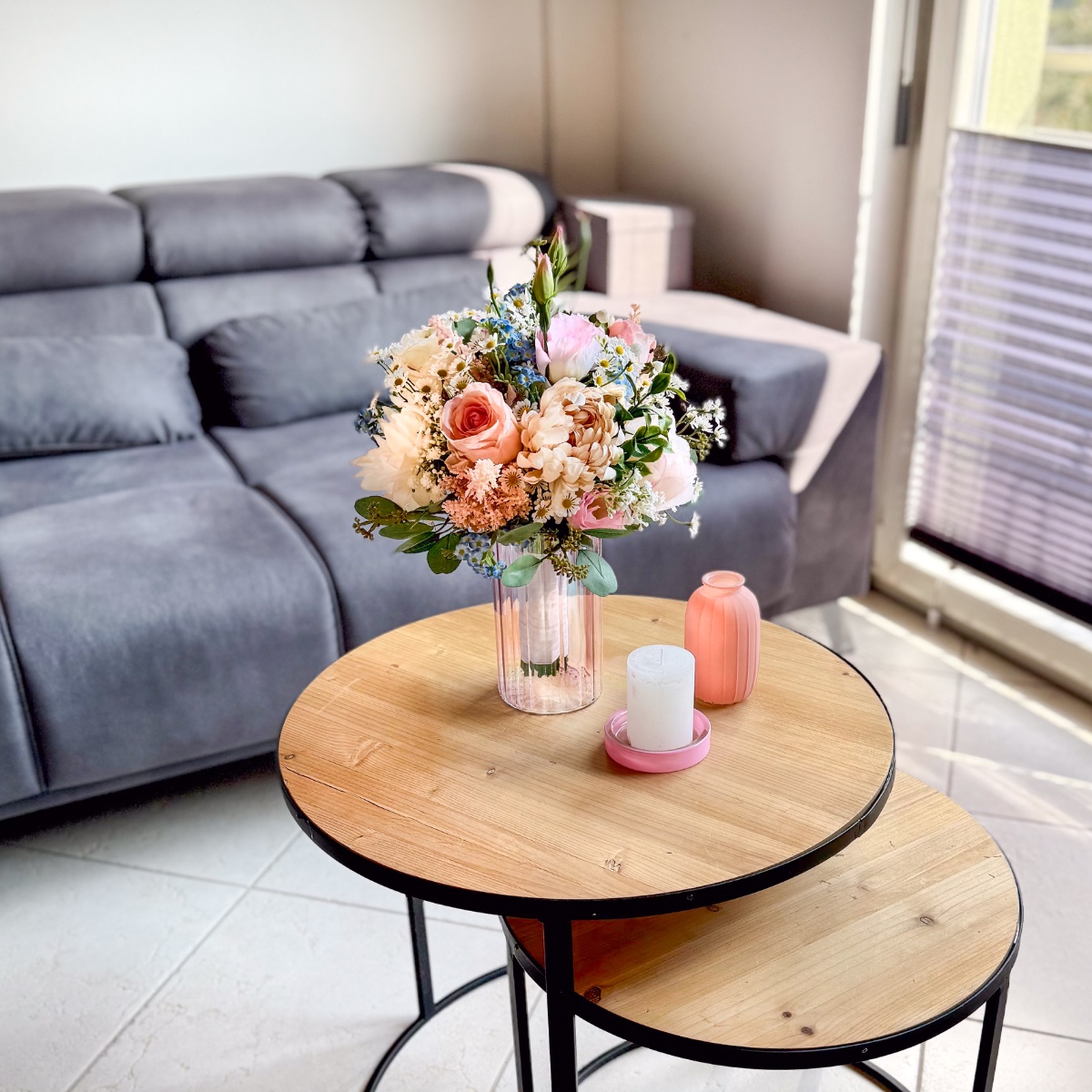 El florecimiento de la elegancia: ¡el ramo de tus sueños para ese día tan especial! Un ramo de novia elegante que combina la elegancia atemporal con la delicadeza romántica. Las magníficas orquídeas blancas Cymbidium y Phalaenopsis forman el corazón de esta creación y le dan al ramo un aire exclusivo y lujoso. Las delicadas peonías rosas añaden un toque juguetón, mientras que las clásicas rosas blancas simbolizan la pureza. La delicada gypsophila completa el arreglo y aporta ligereza y armonía. ¡Déjate encantar por este ramo de novia y haz que tu día sea inolvidable! ¡Compra el look!