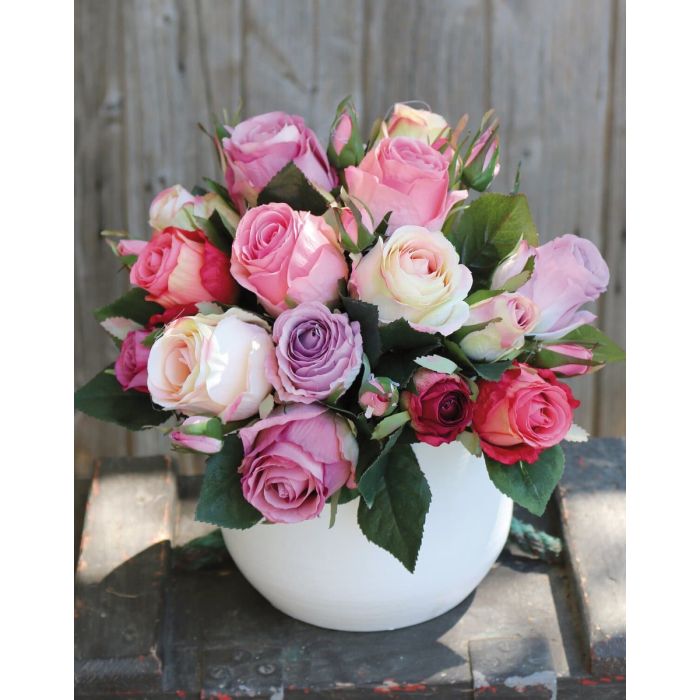 Ramo de rosas de plástico MOLLY, rosa-crema-rojo, 30cm, Ø25cm