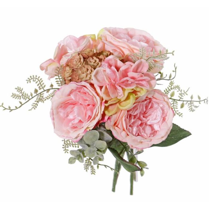 Ramo de rosas hortensia y echeveria artificial SIERRA rosa, 25cm, Ø25cm
