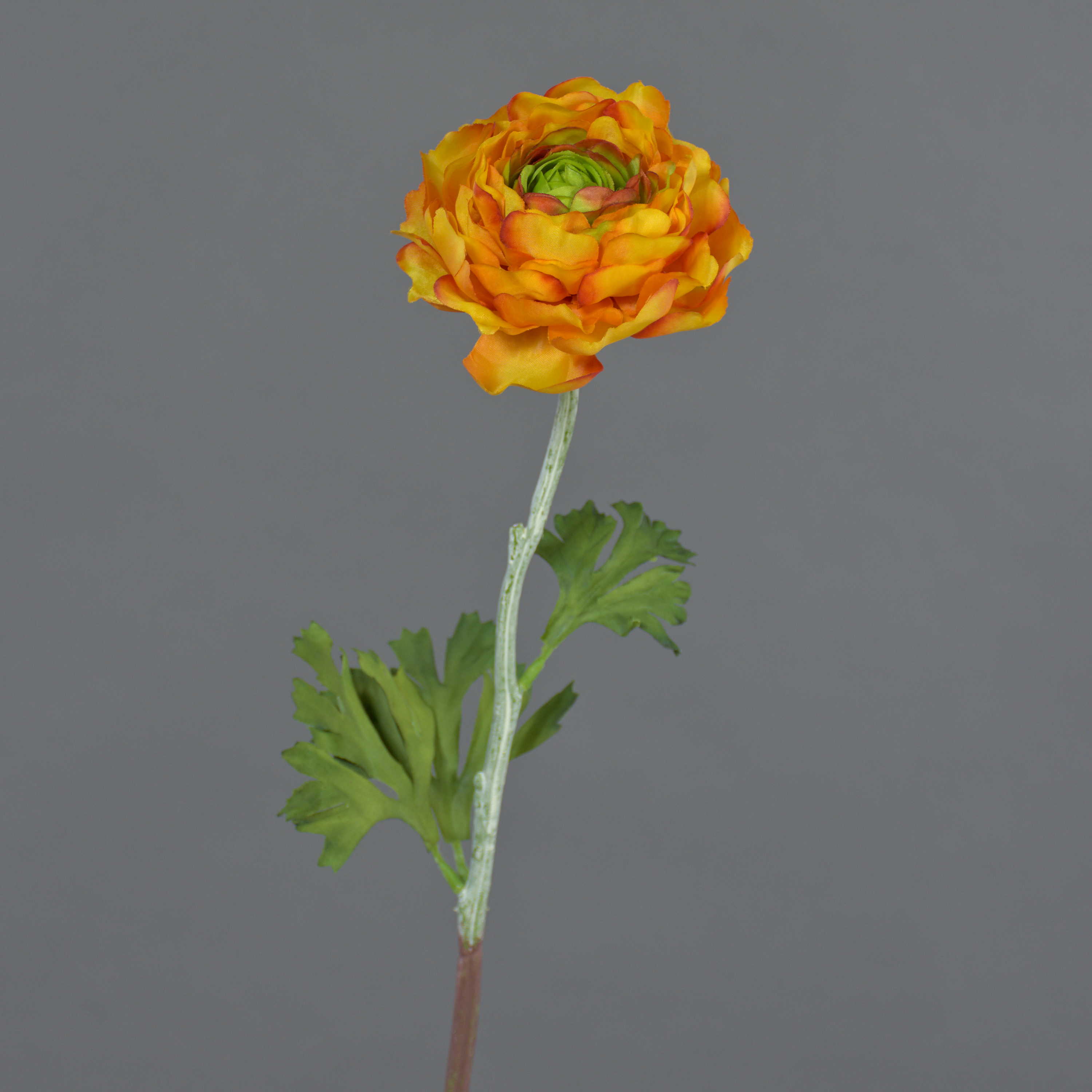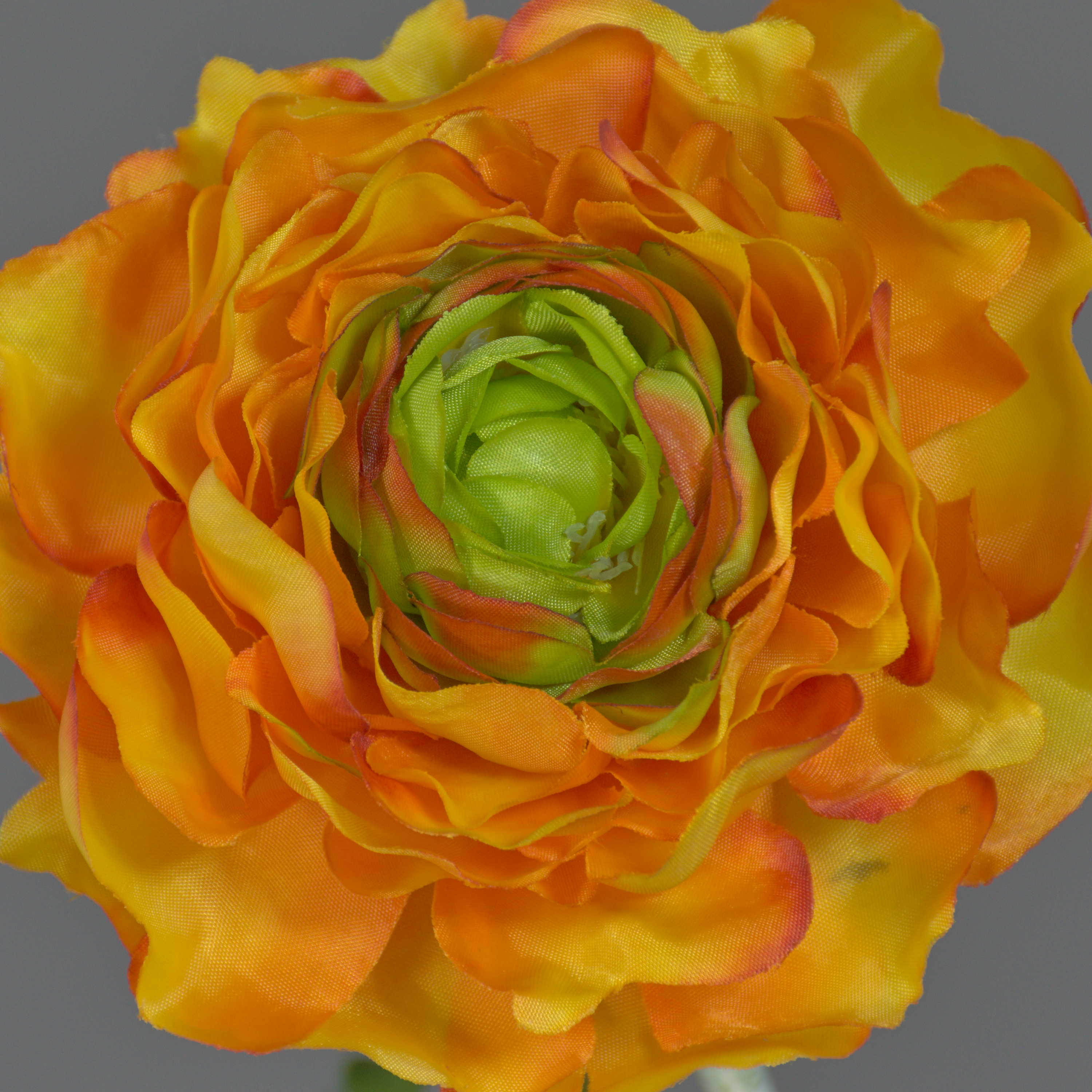 Ranúnculo artificial ELORIO de color naranja-verde con una dimensión total de aprox. 50 cm. Una decoración de aspecto natural para su hogar.