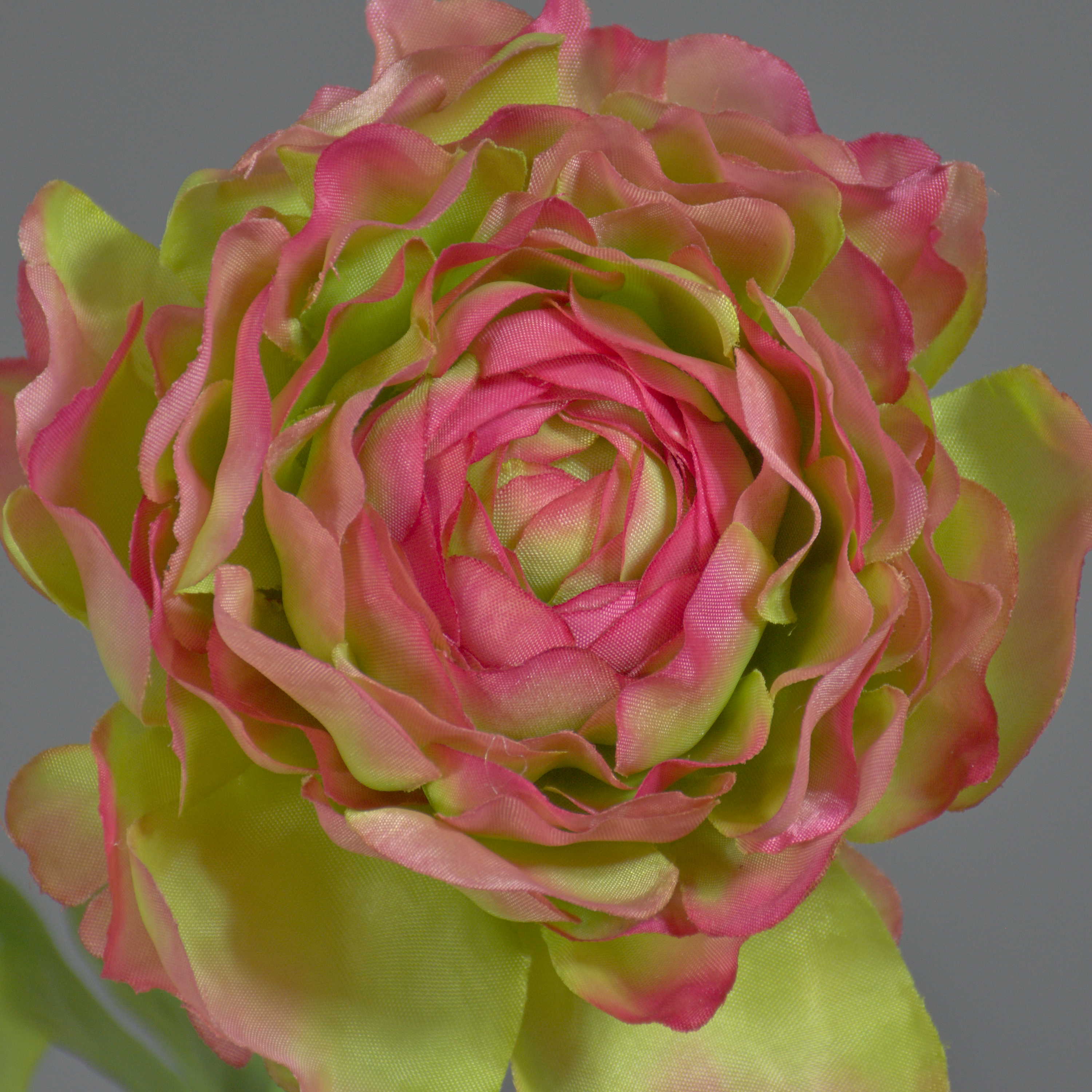 Ranúnculo artificial ELORIO de color rosa-verde con una dimensión total de aprox. 50 cm. Una decoración de aspecto natural para su hogar.