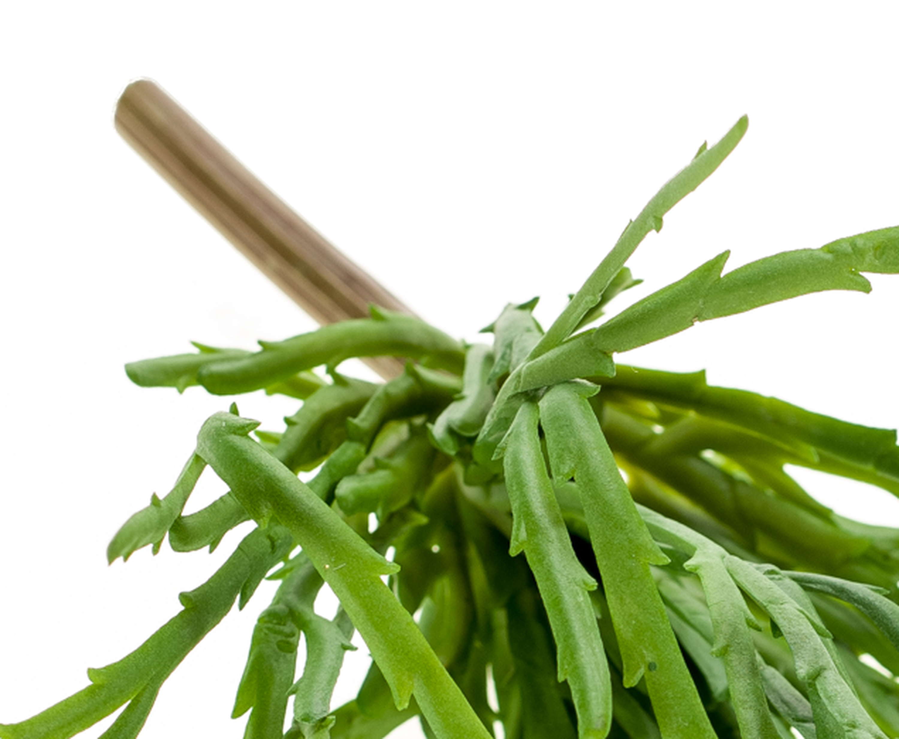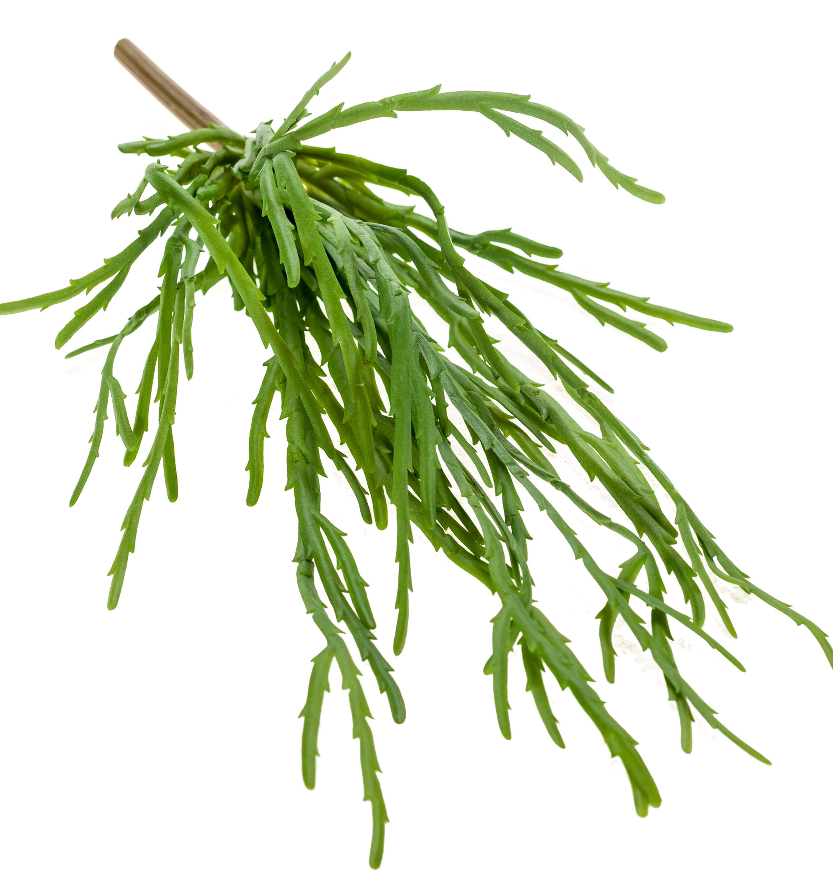 La Rhipsalis cassutha HADRIAN hecha de plástico de alta calidad tiene un aspecto llamativo con sus hojas aserradas. El bastón permite una fácil inserción en una maceta a su elección y decora mesas pequeñas en salones de cócteles, heladerías o bistros en un instante.