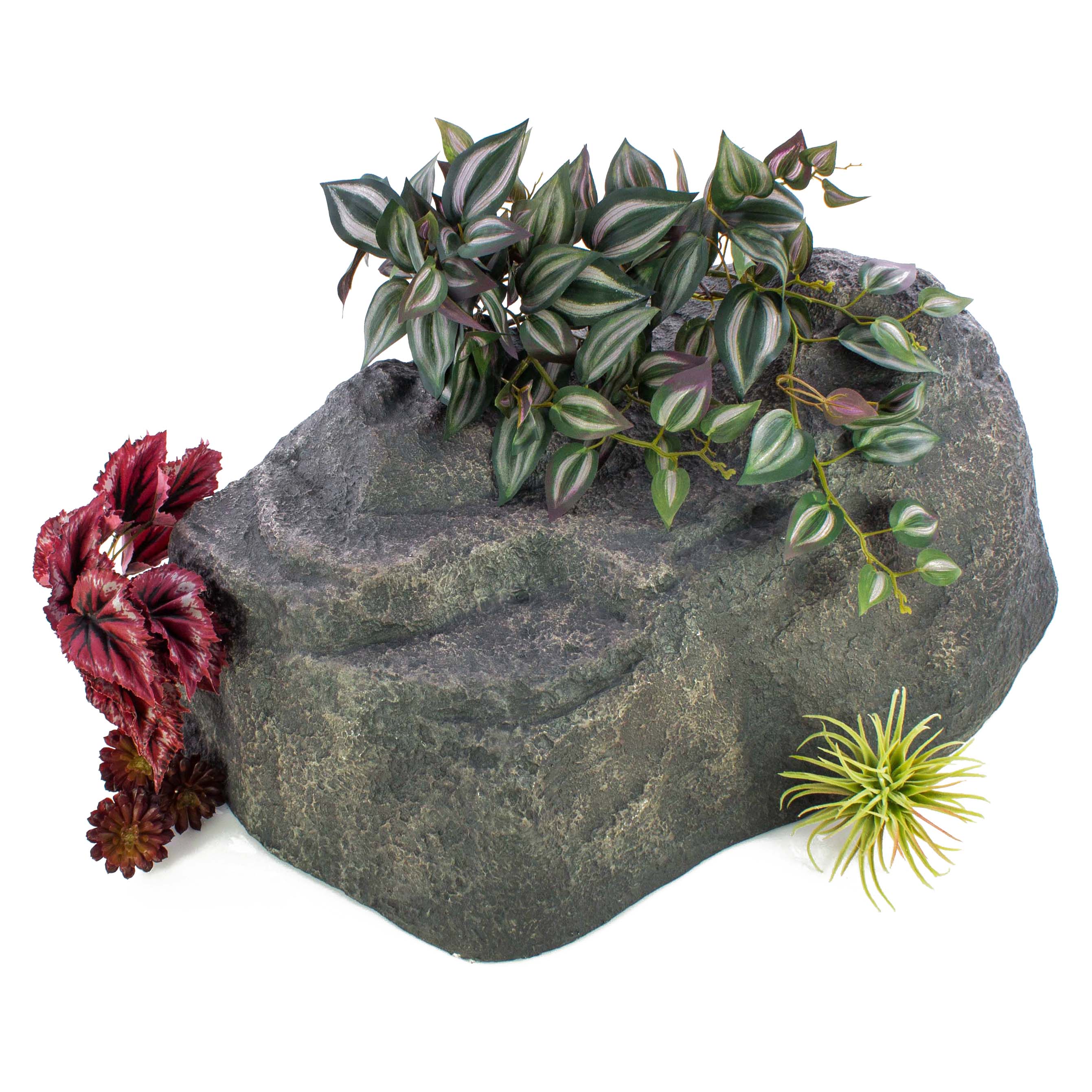 Roca artificial plana / roca para cubrir ANDREAS, gris, 60 x 44 x 30 cm, resistente a la intemperie