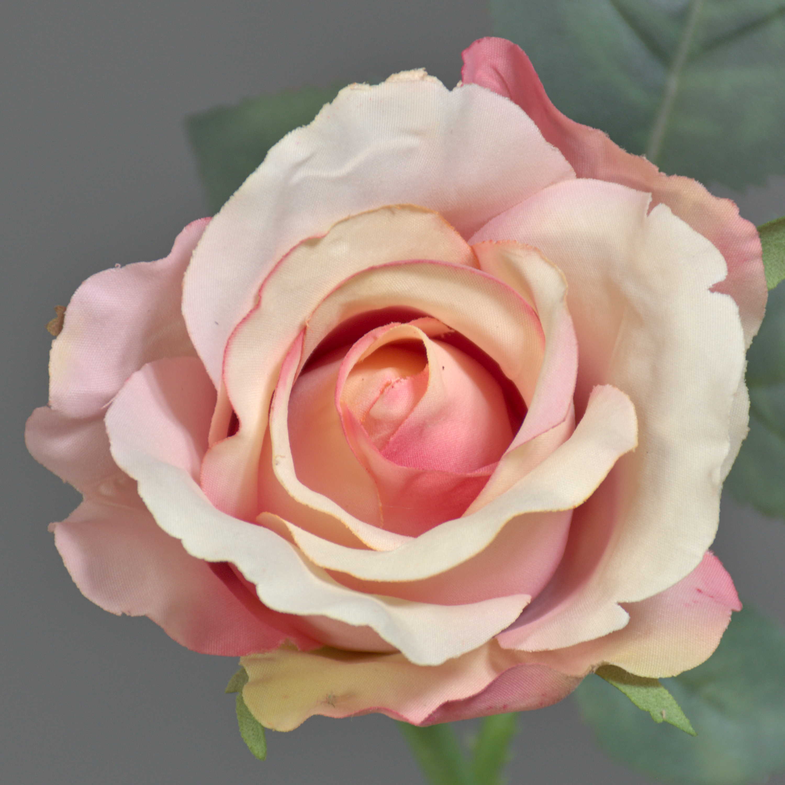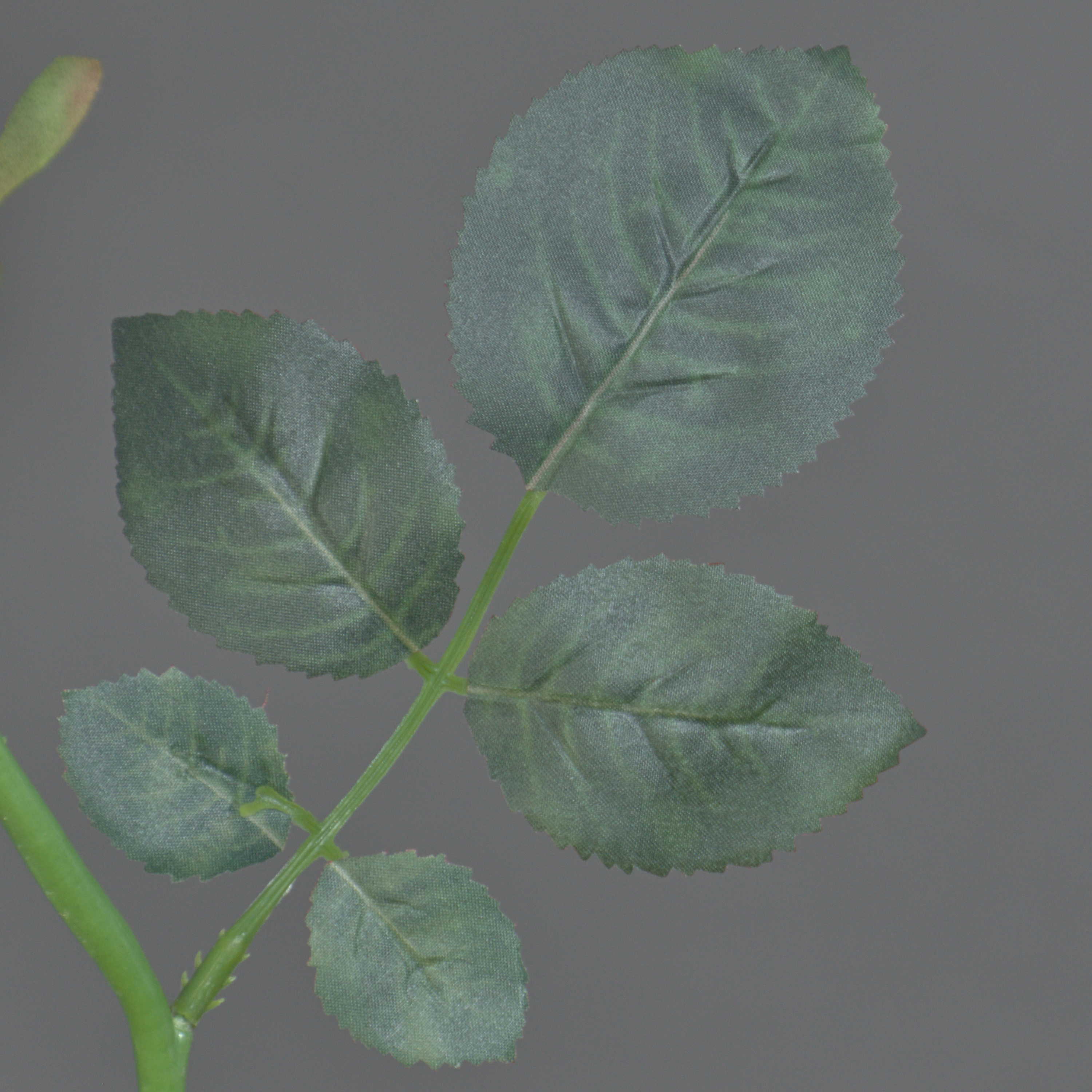 Bonita rosa artificial ELLI con una flor de color rosa y hojas verdes de textil. La pequeña rosa posee una longitud total de aprox. 30 cm y tiene un diámetro de la inflorescencia de aprox. 6 cm.