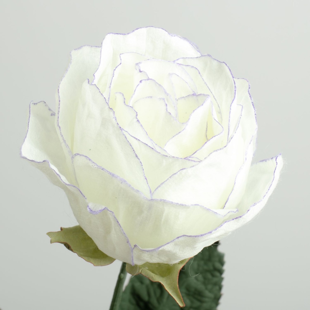 Rosa artificial FREIDA, colección Eco, blanco-lila, 65 cm, Ø 7 cm