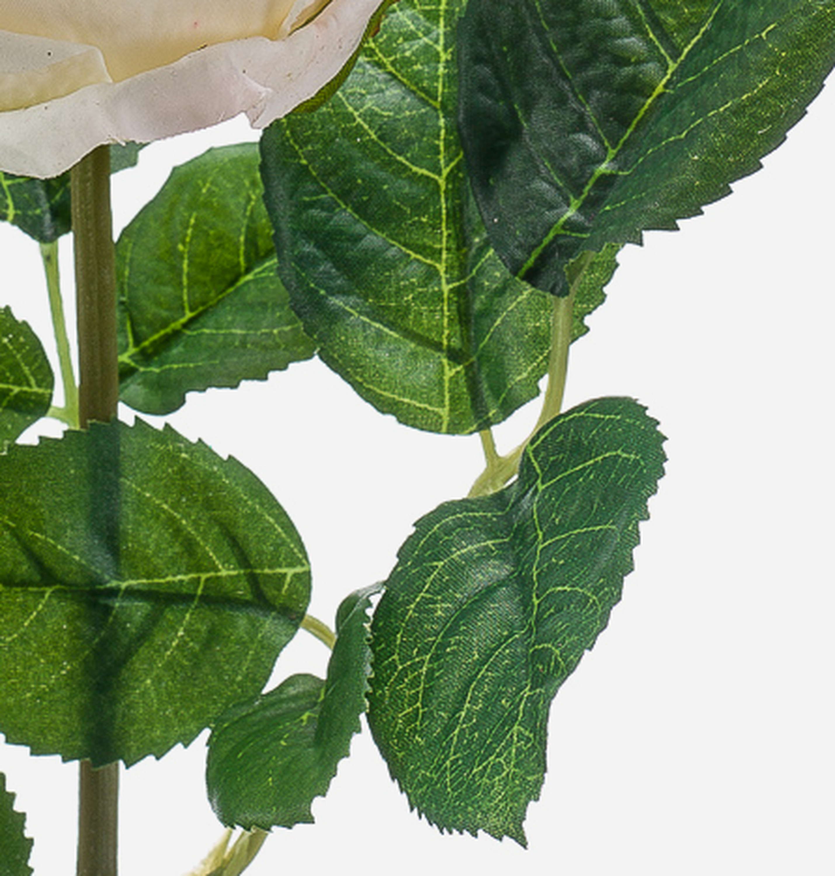La rosa artificial CATINCA en color crema está unida a un tallo y tiene una longitud de aproximadamente 60 cm.