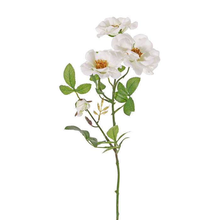 Rosa silvestre artificial BALOU, blanca, 60cm, Ø7-9cm