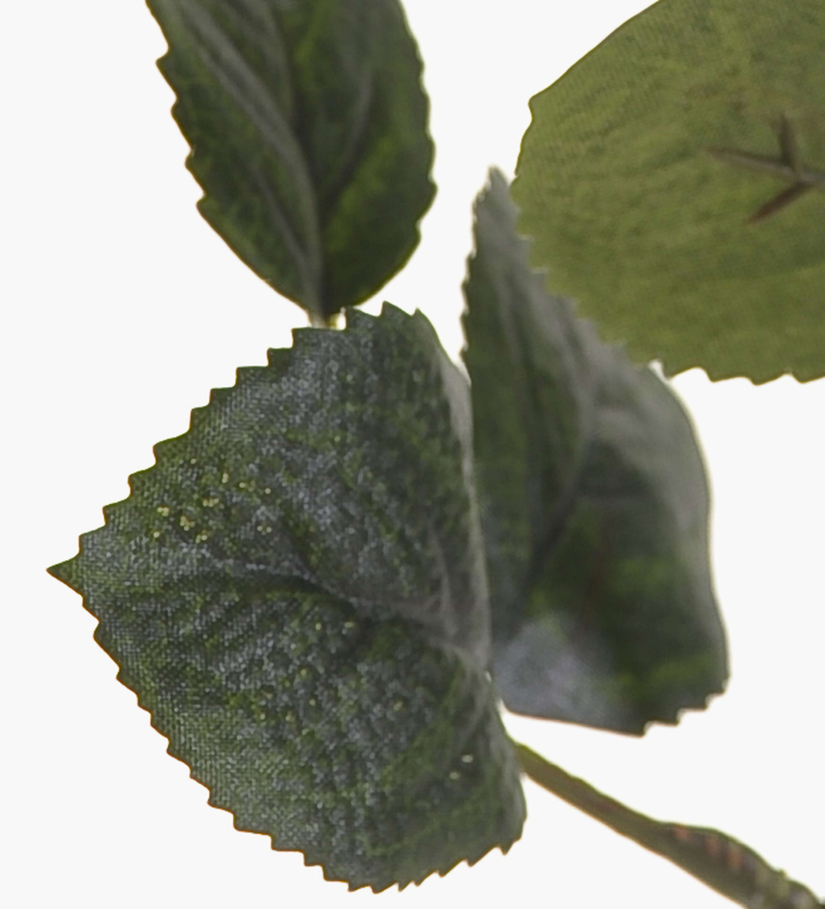 - Flor abierta de color amarillo elaborada con fibra textil de alta calidad y con muchas hojas verdes.