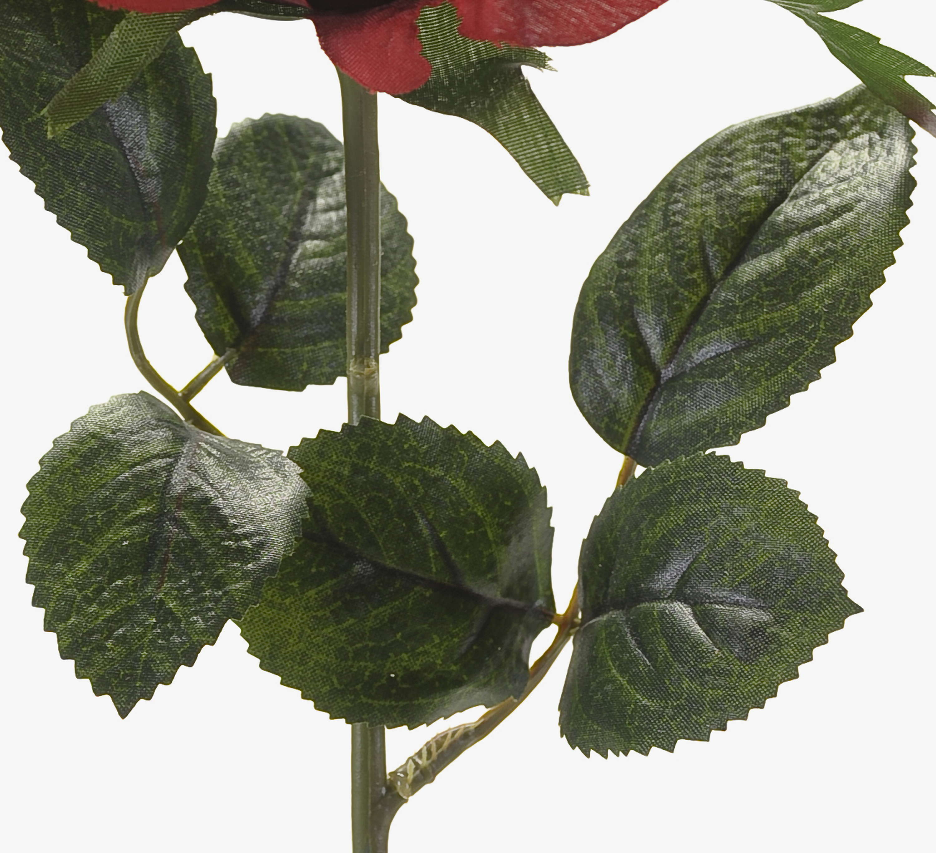 Bonita rosa artificial SIMONY en color rojo con hojas verdes. La rosa artificial posee una longitud total de aproximadamente 45 cm y un diámetro de la flor de 8 cm.