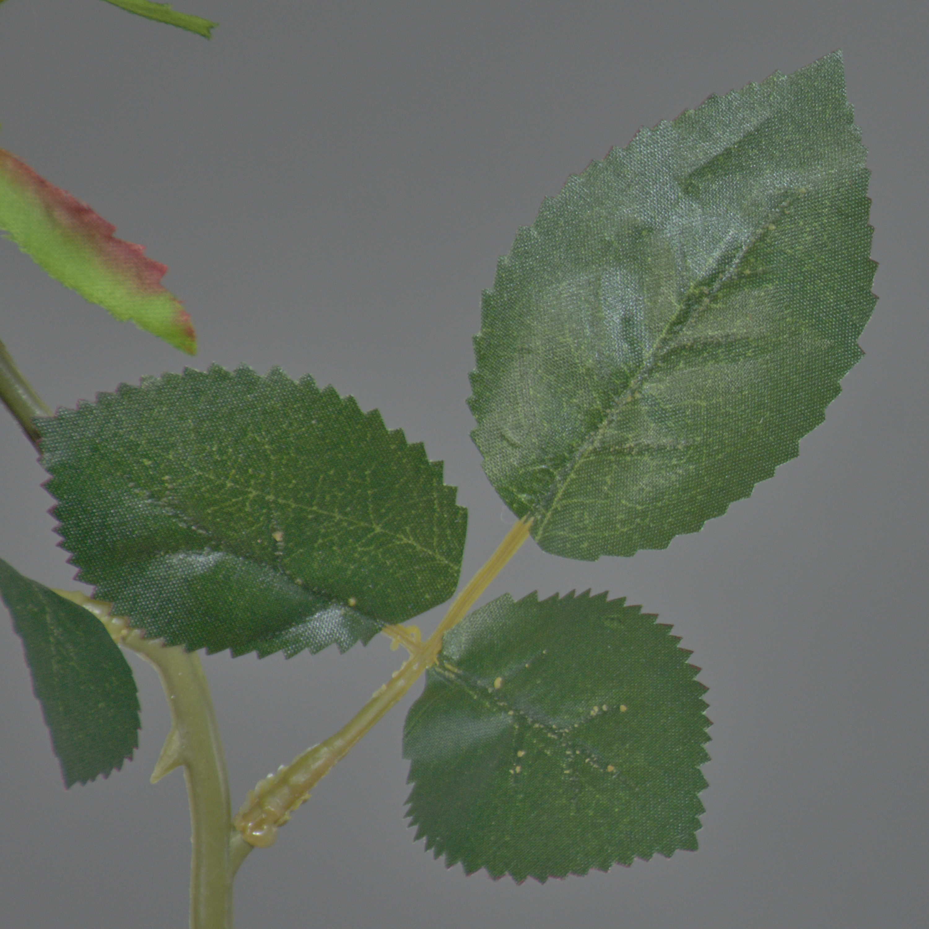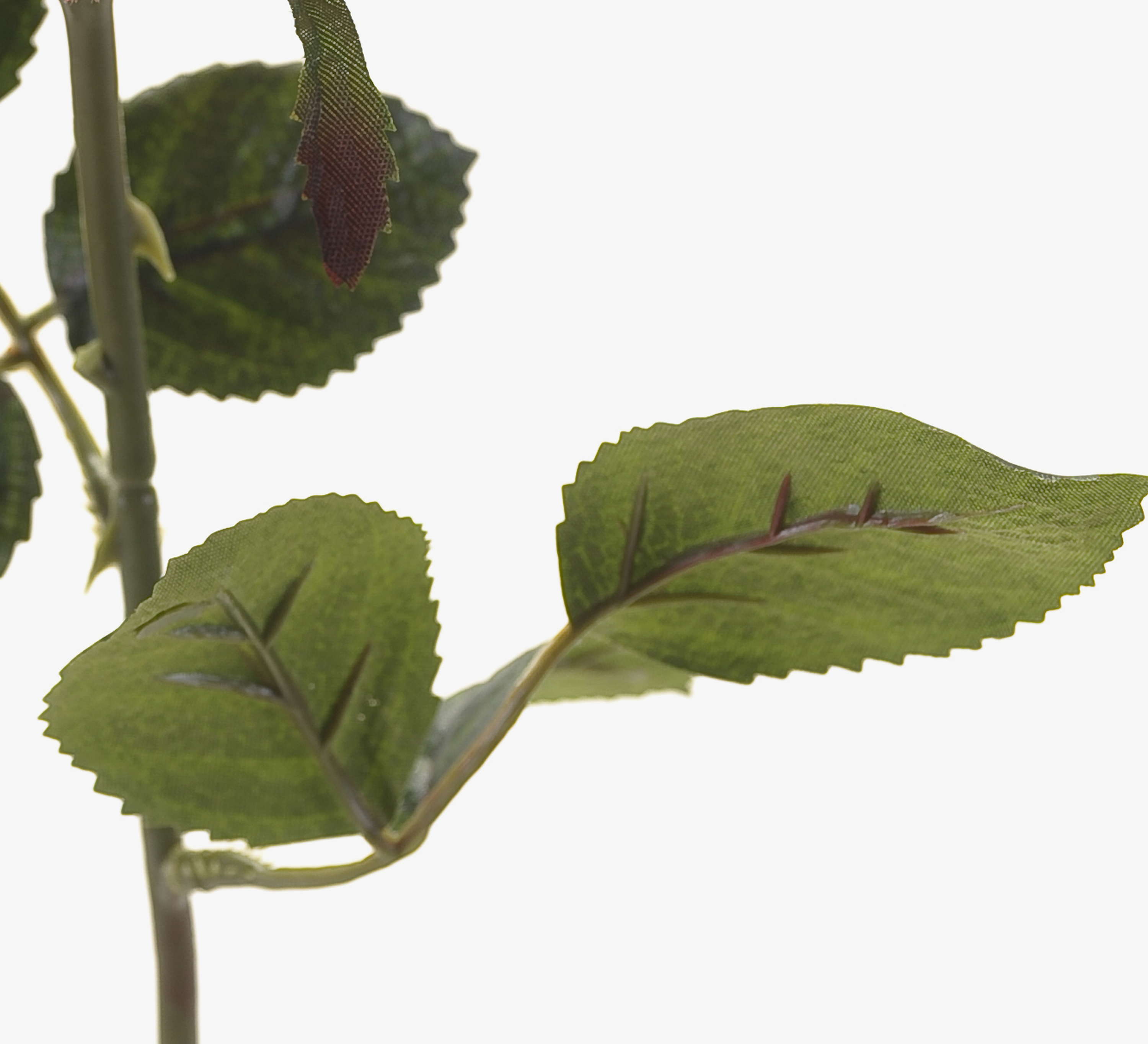 - Tallo elaborado con plástico y hojas con fibra textil de alta calidad.
