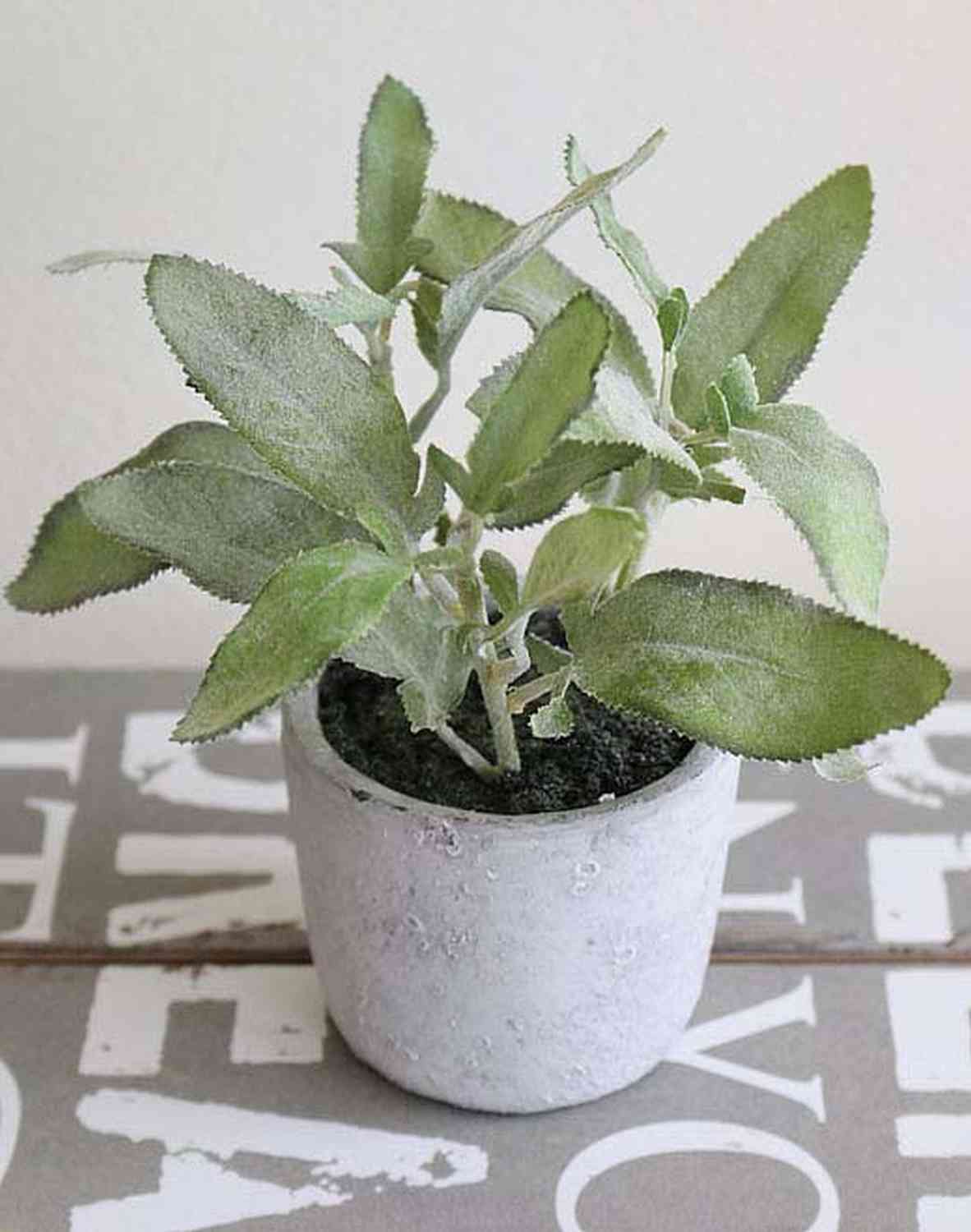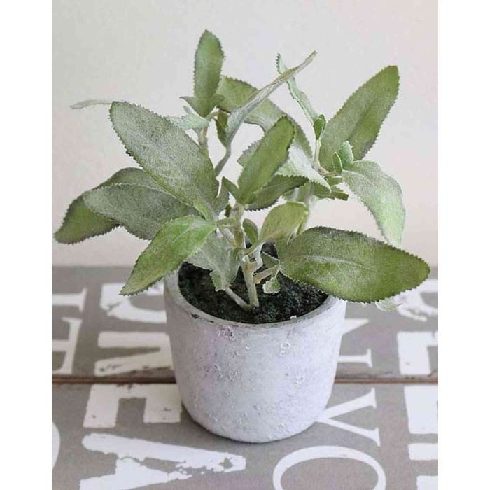 Salvia artificial ALBUS en maceta de hormigón, verde, 18cm